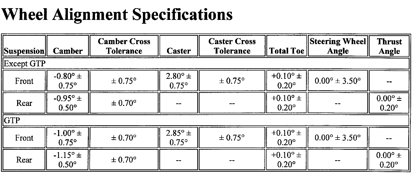 Wheel Alignment Specifications