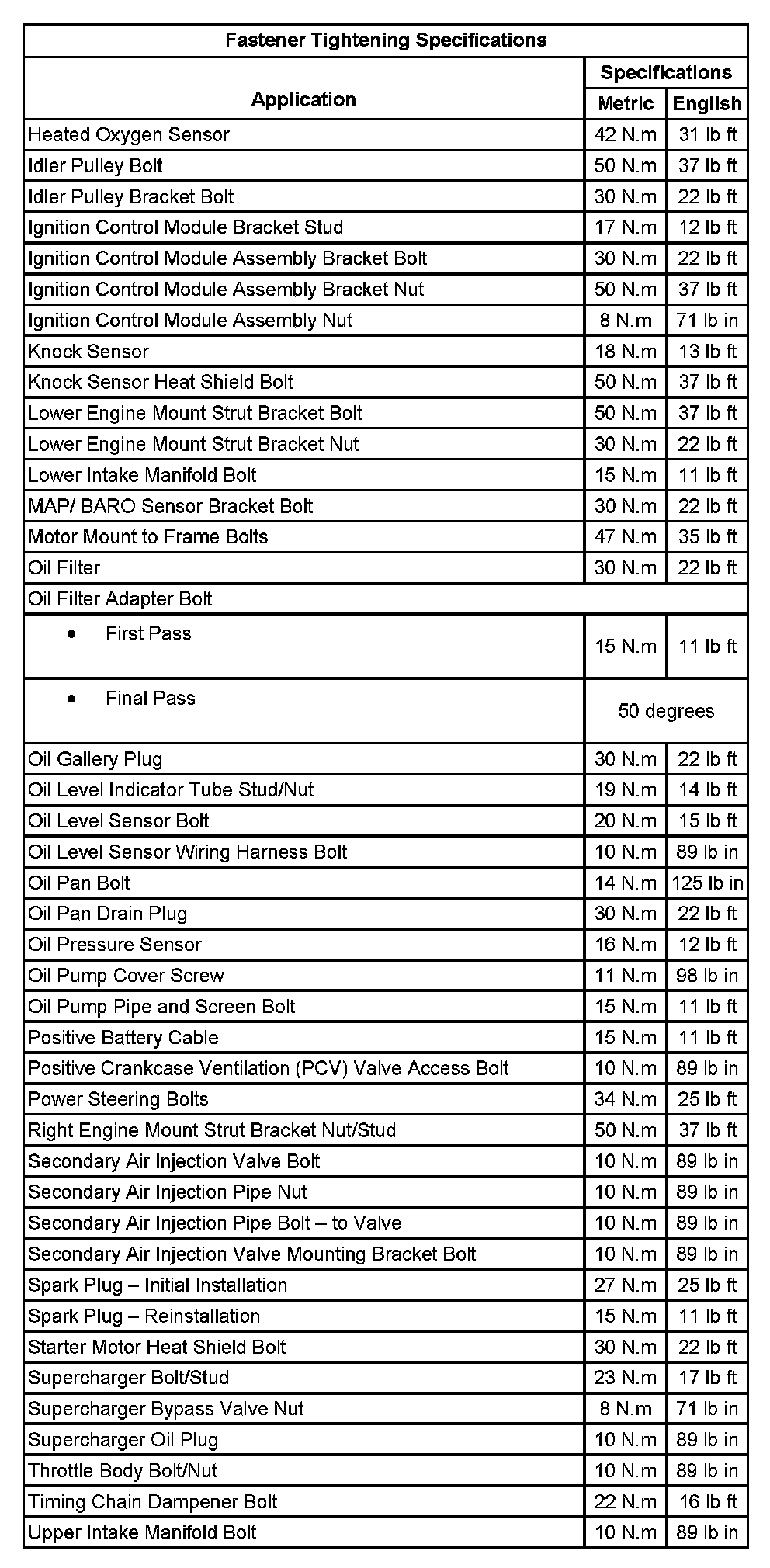 Fastener Tightening Specifications