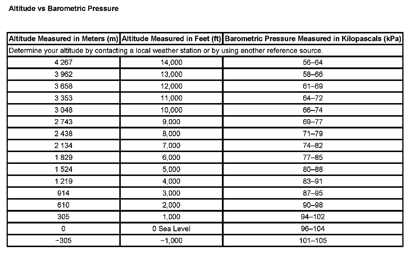 Altitude Vs Barometric Pressure:
