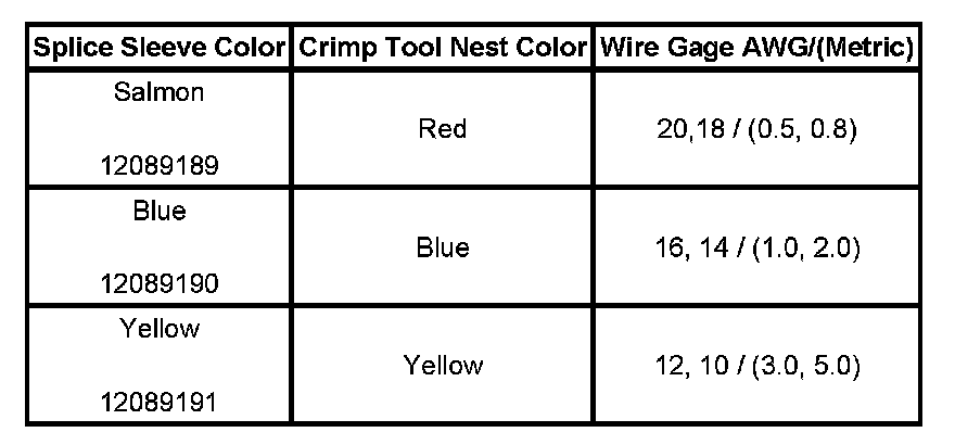 5. Select the proper duraseal splice sleeve (2) and the required crimp nest tool, refer to the Crimp and Seal Splice Table.