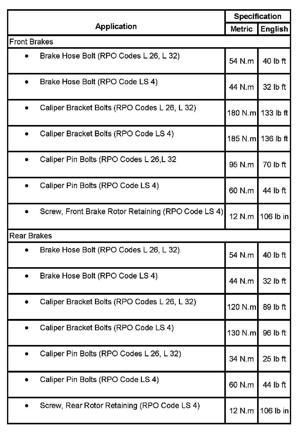 Fastener Tightening Specifications