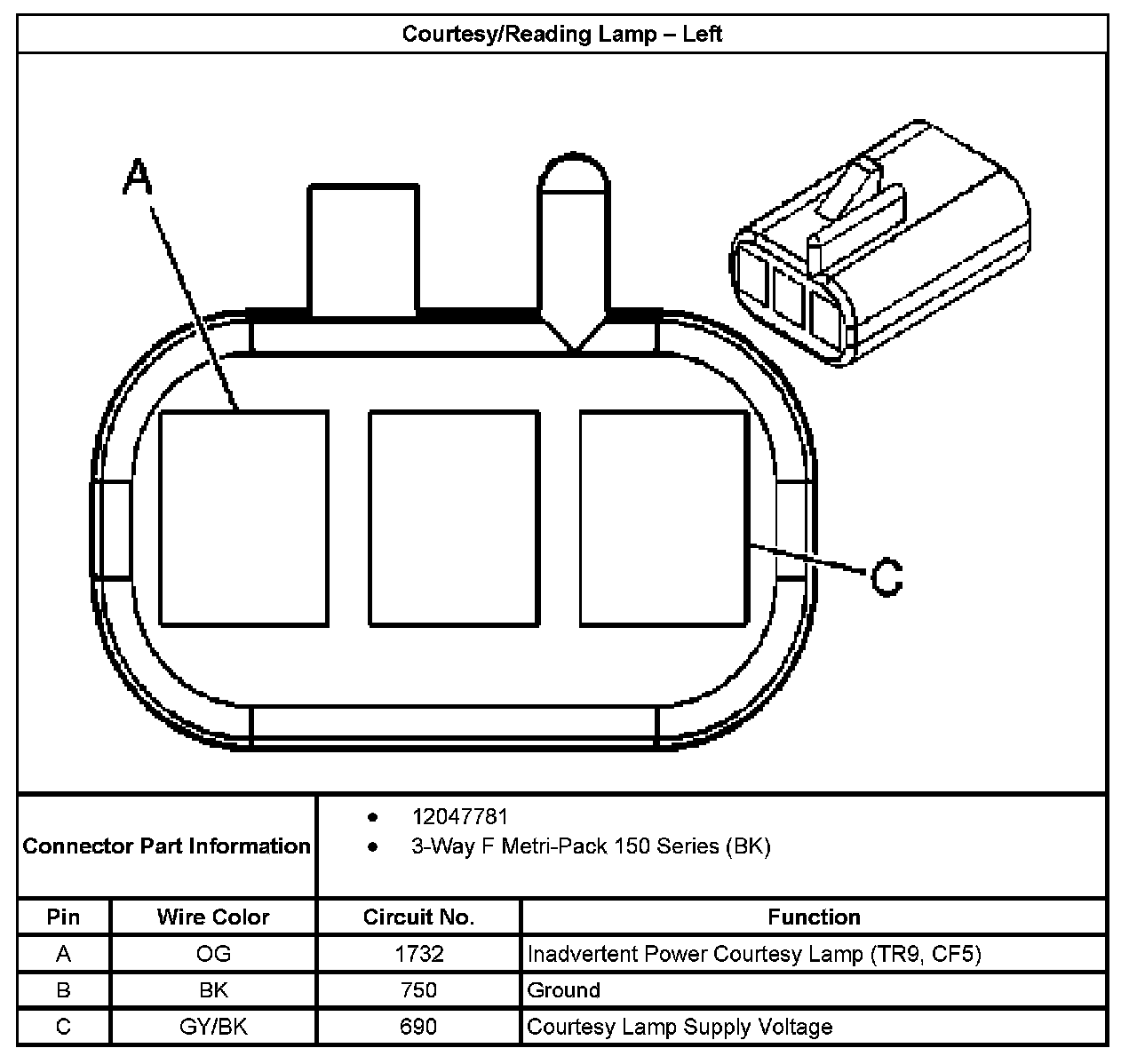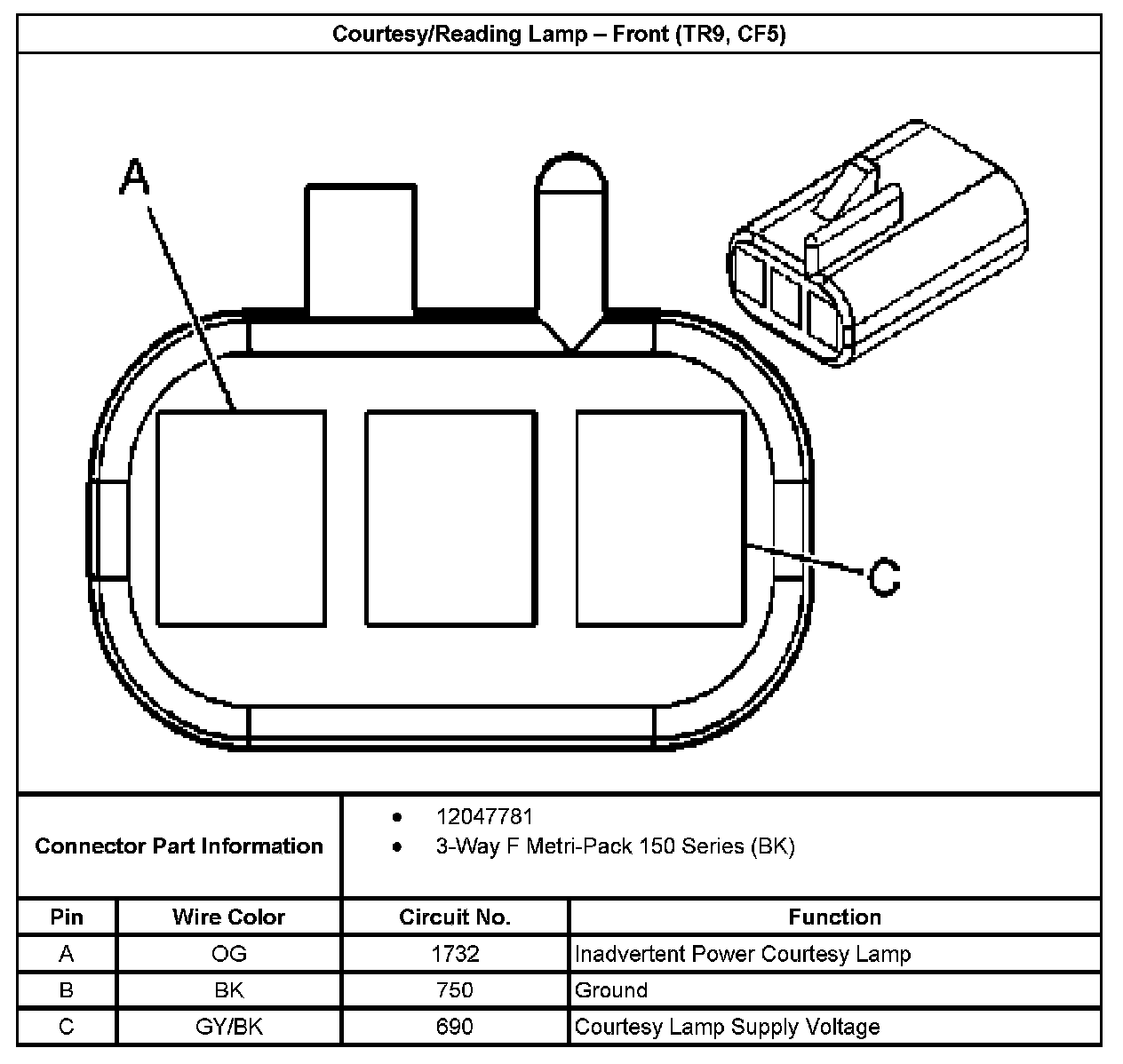 Courtesy/Reading Lamp - Front (With RPO Code TR9, CF5):