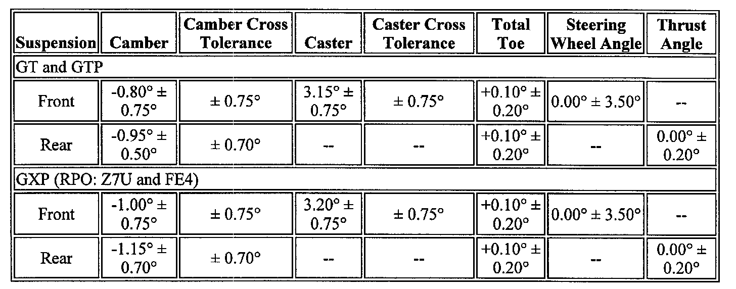 Wheel Alignment Specifications