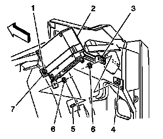 4. Remove the bolt (1) for the module bracket strap (7).