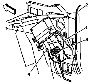 9. Pull downward on the back of the I/P compartment to remove the OnStar(R) module (2) from the bracket (3).