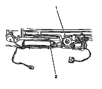 4. Release the retainers for the power sunroof control module by sliding the control module (2) towards the middle of the vehicle.