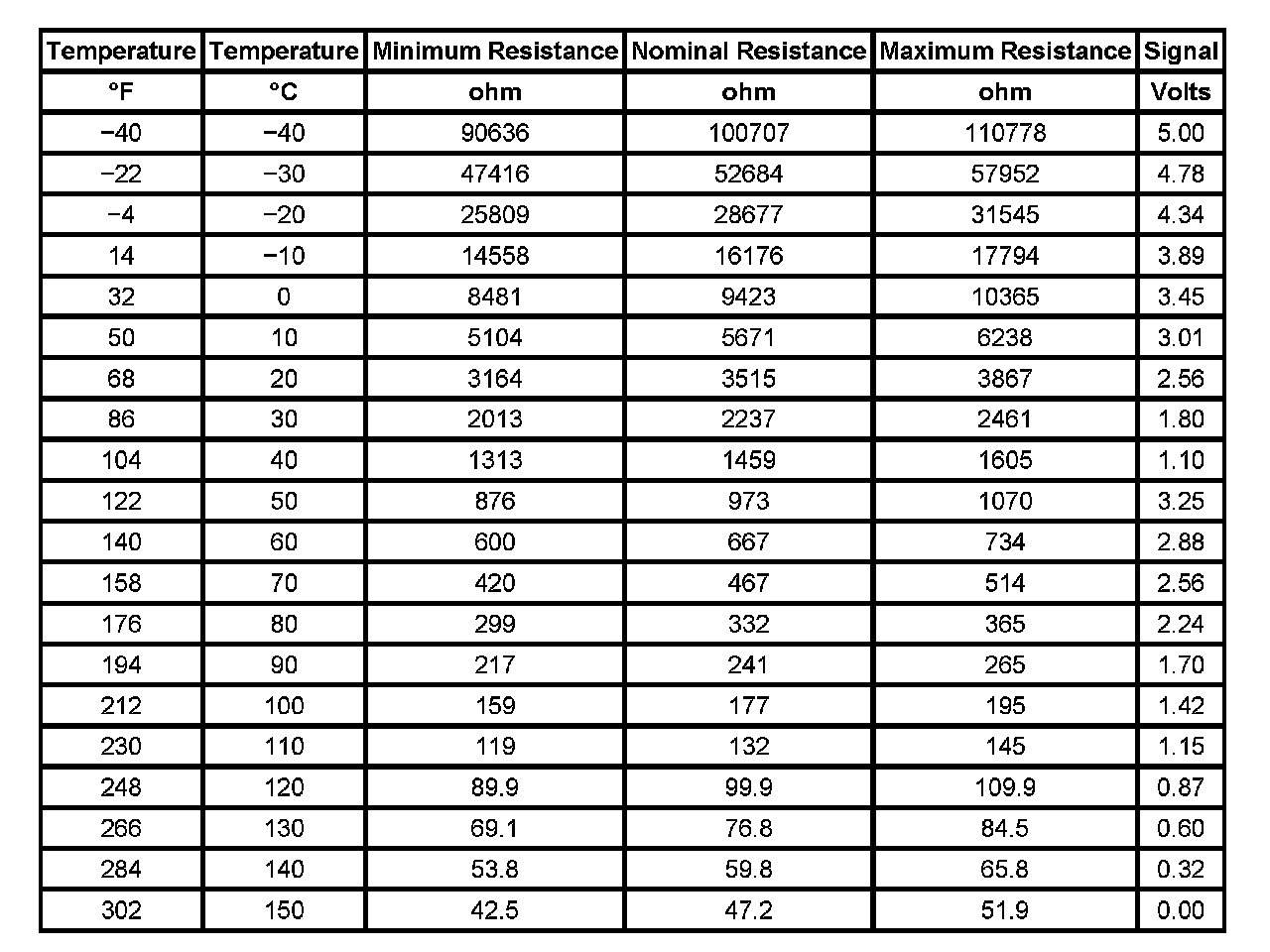 Transmission Fluid Temperature (TFT) Sensor Specifications: