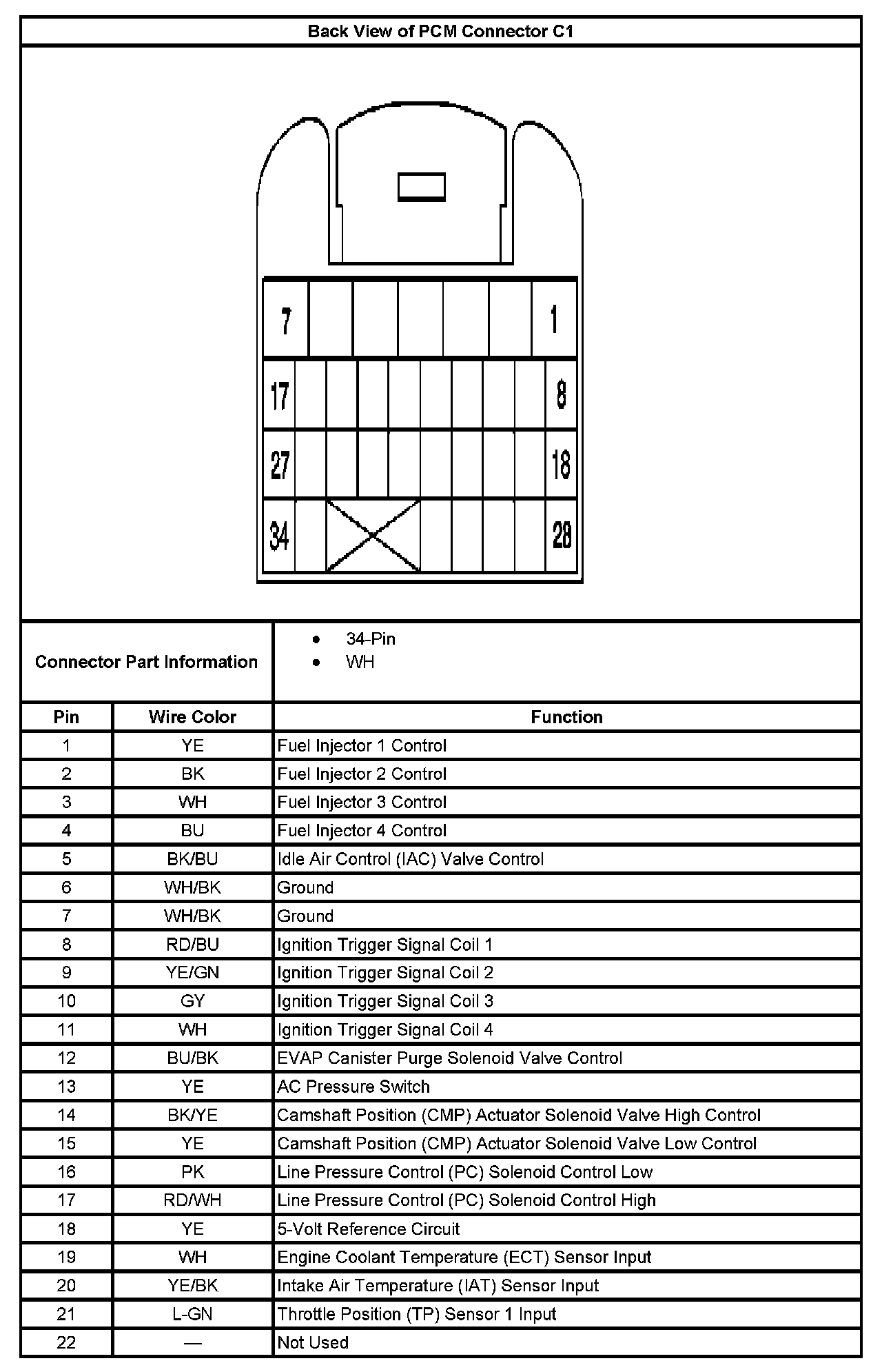 Back View Of PCM Connector C1 Part 2: