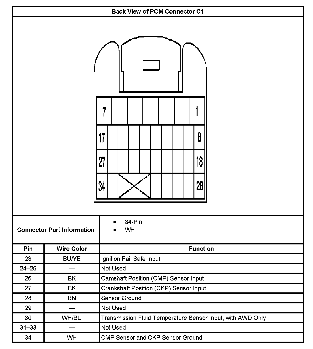 Back View of PCM Connector C1
