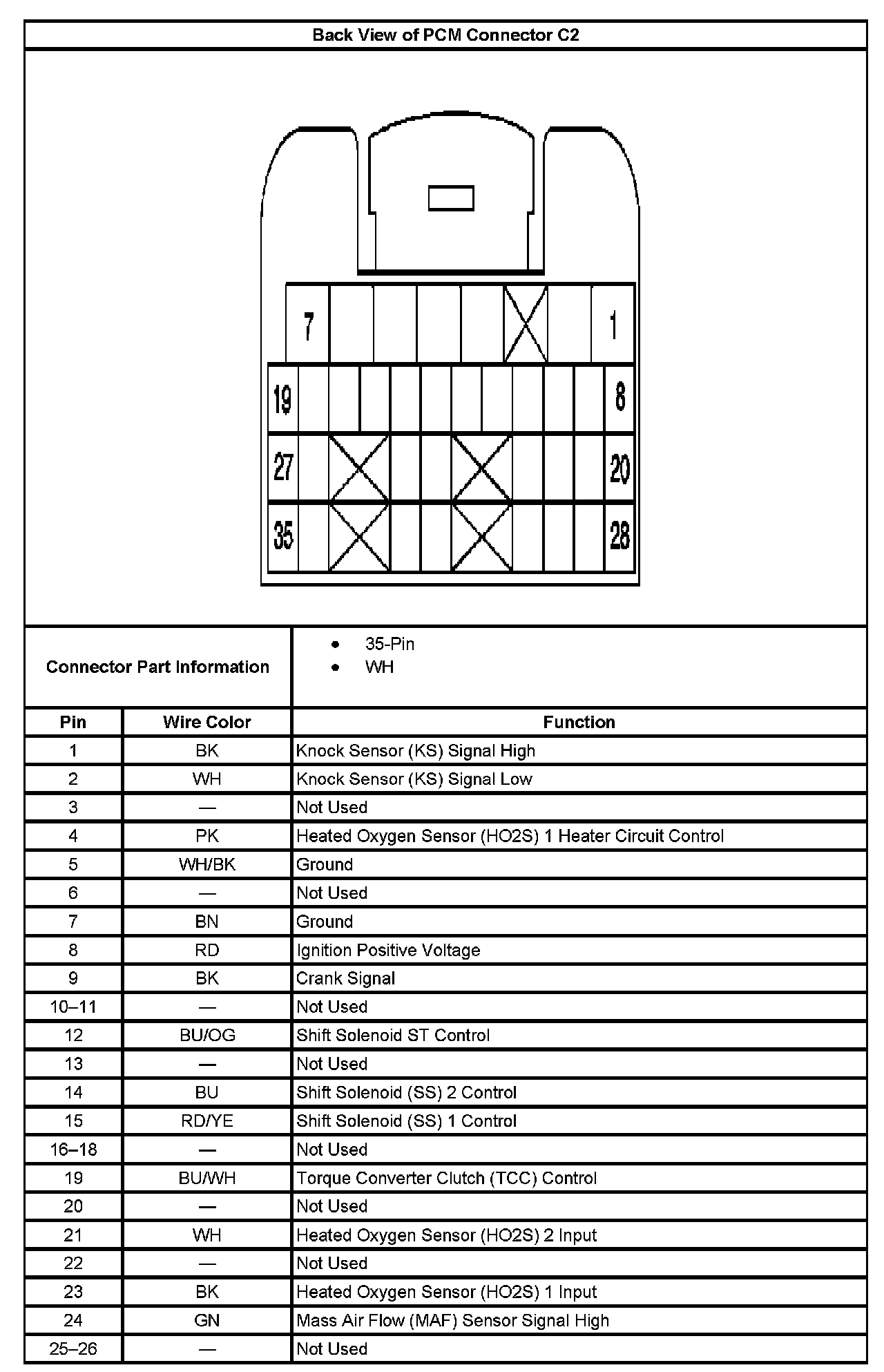 Back View Of PCM Connector C2 Part 1: