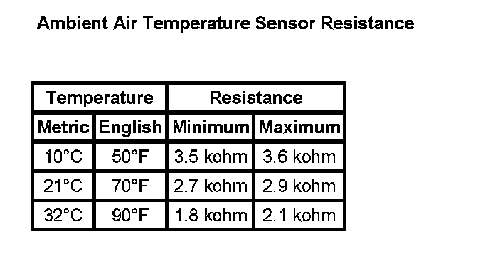 Ambient Air Temperature Sensor Resistance: