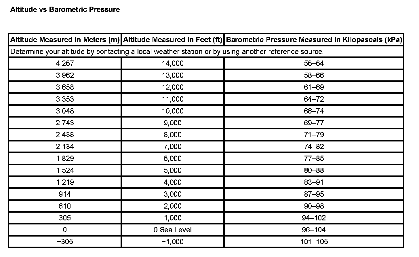 Pressure, Vacuum and Temperature Specifications