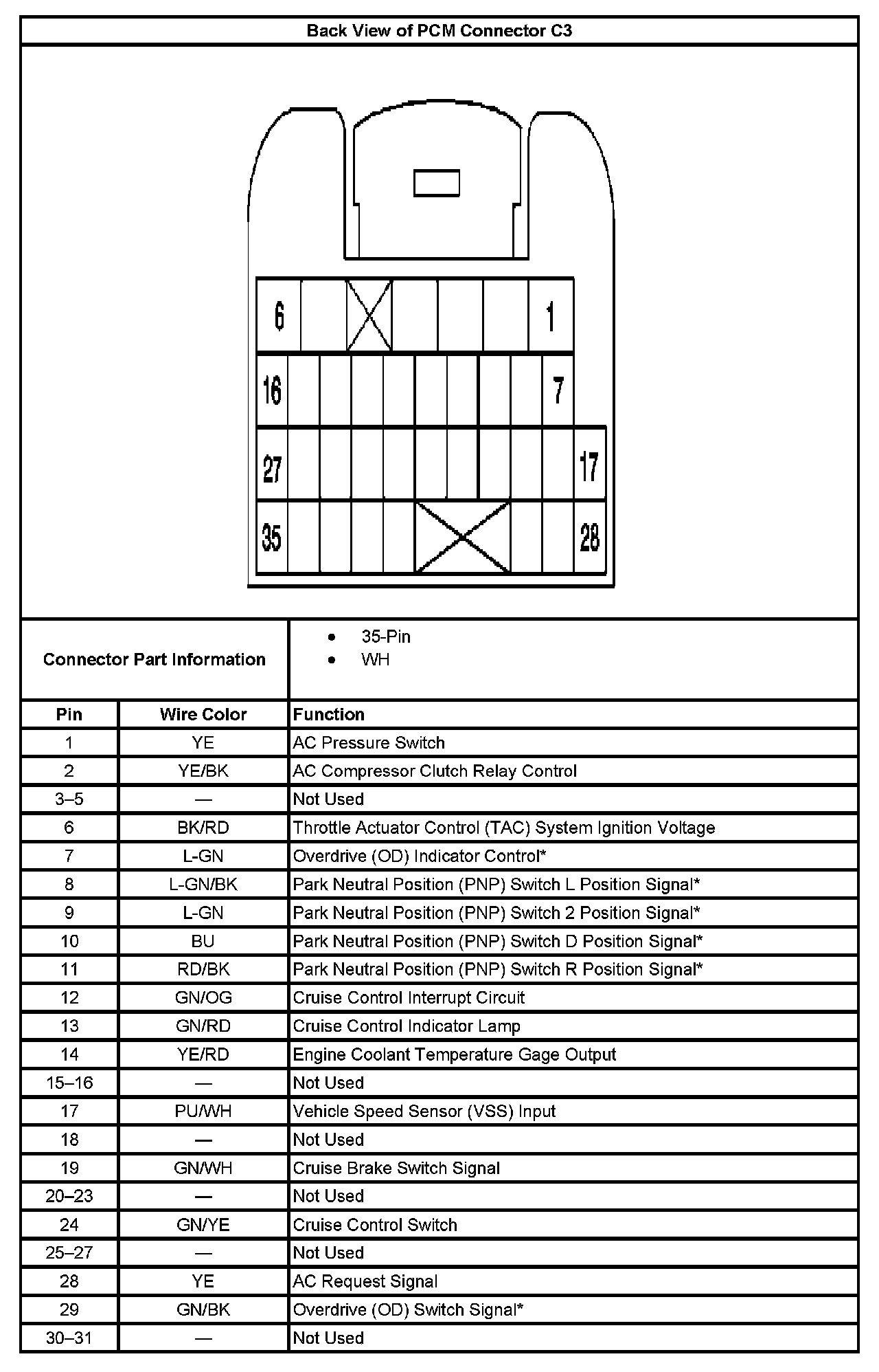 Back View Of PCM Connector C3 Part 2: