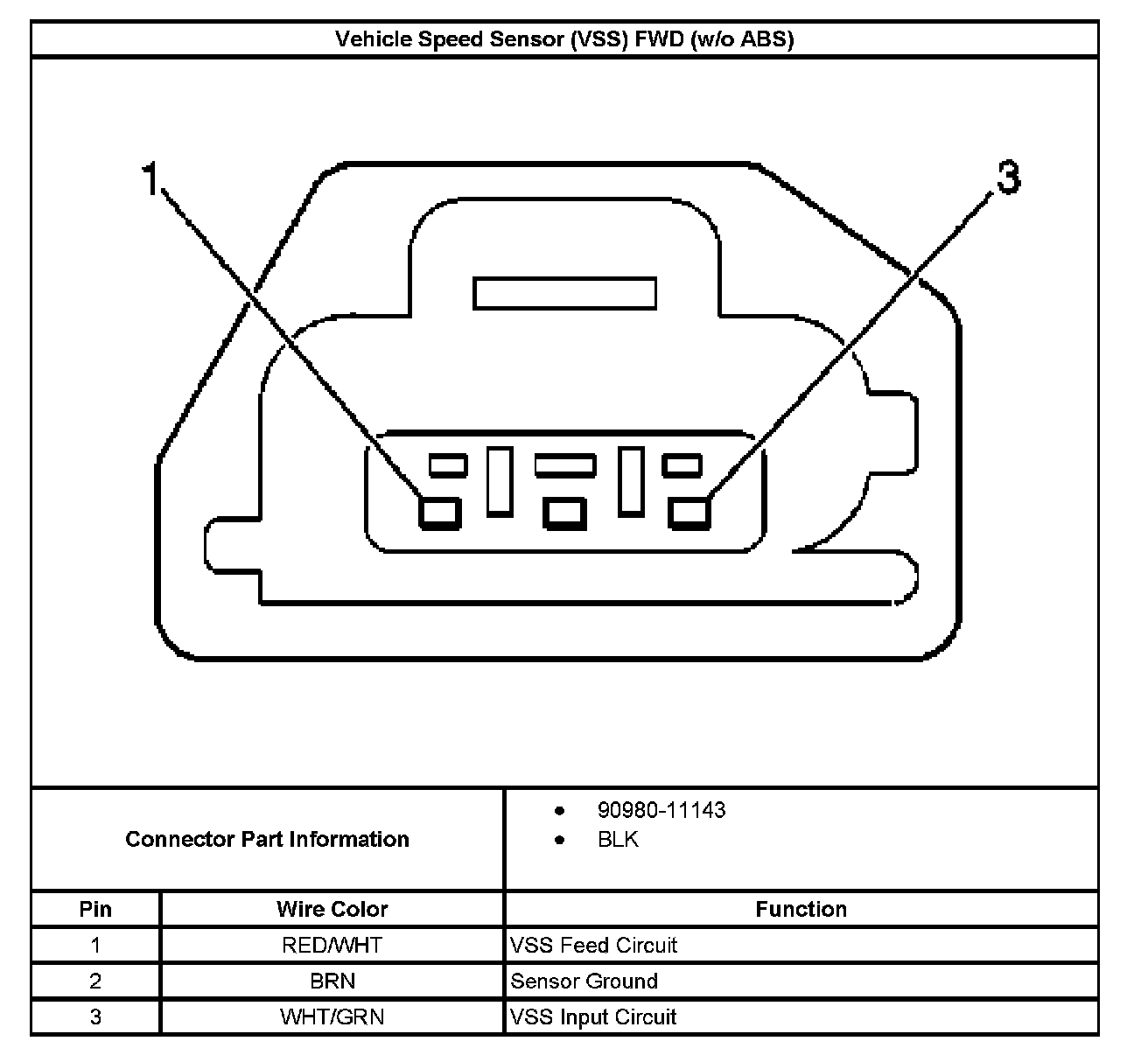 Vehicle Speed Sensor (VSS) FWD (Without RPO Code ABS):