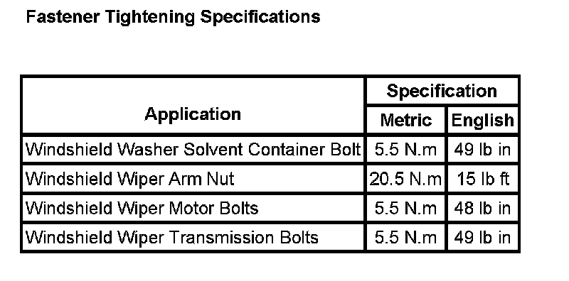 Wiper and Washer Systems: Specifications