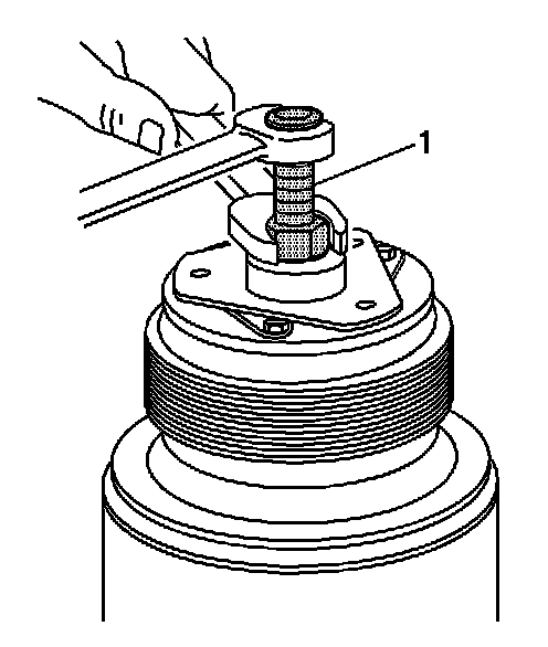 5. Install the J 33013-B (1) and the bearing onto the clutch drive plate. Thread the center bolt onto the compressor shaft.