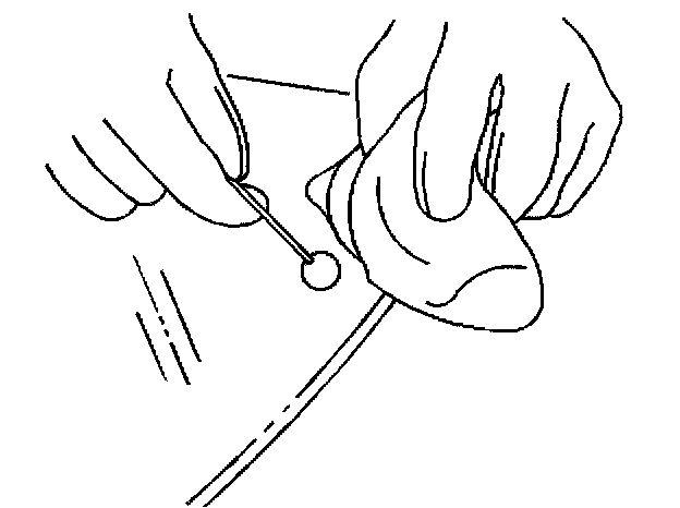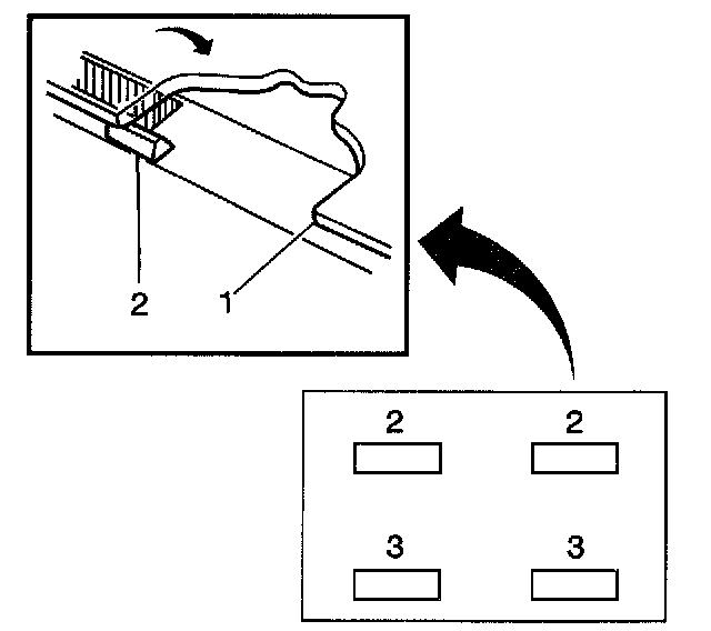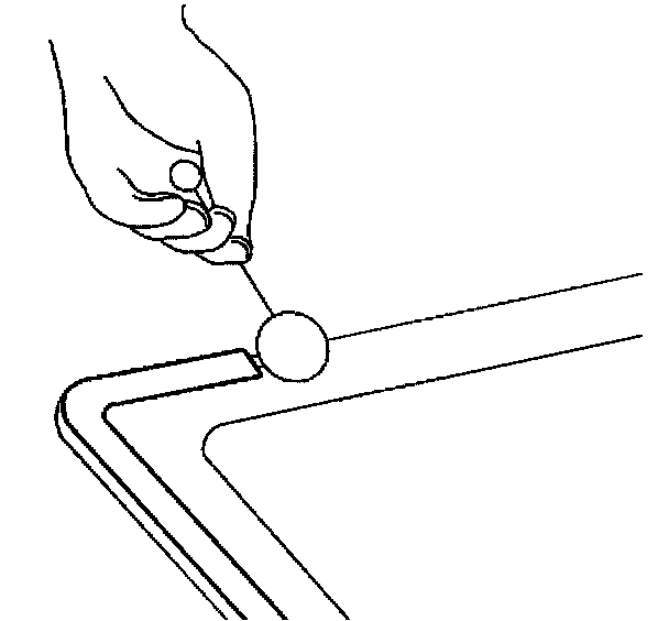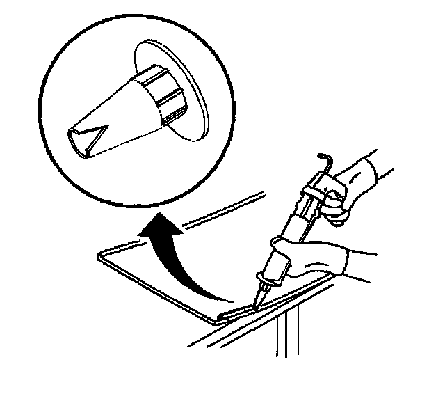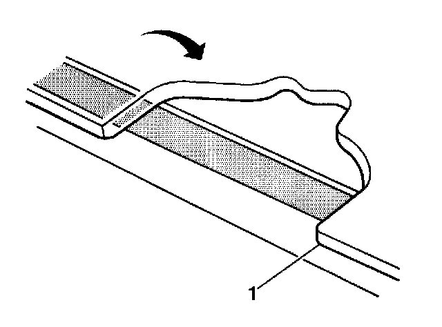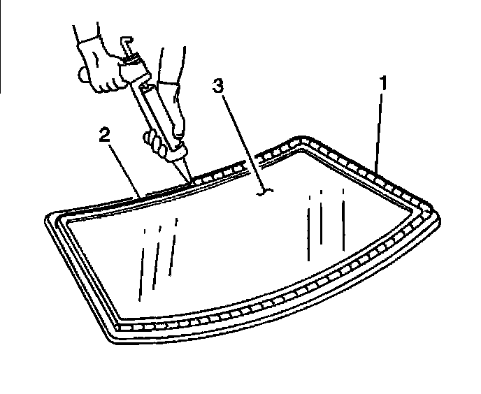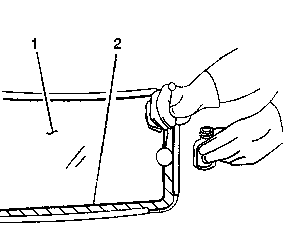 Important: Do not apply the black #3 primer to the existing bead (1) of the urethane adhesive on the pinch-weld flange. Apply the primer only to nicks, scratches or the primed surfaces.