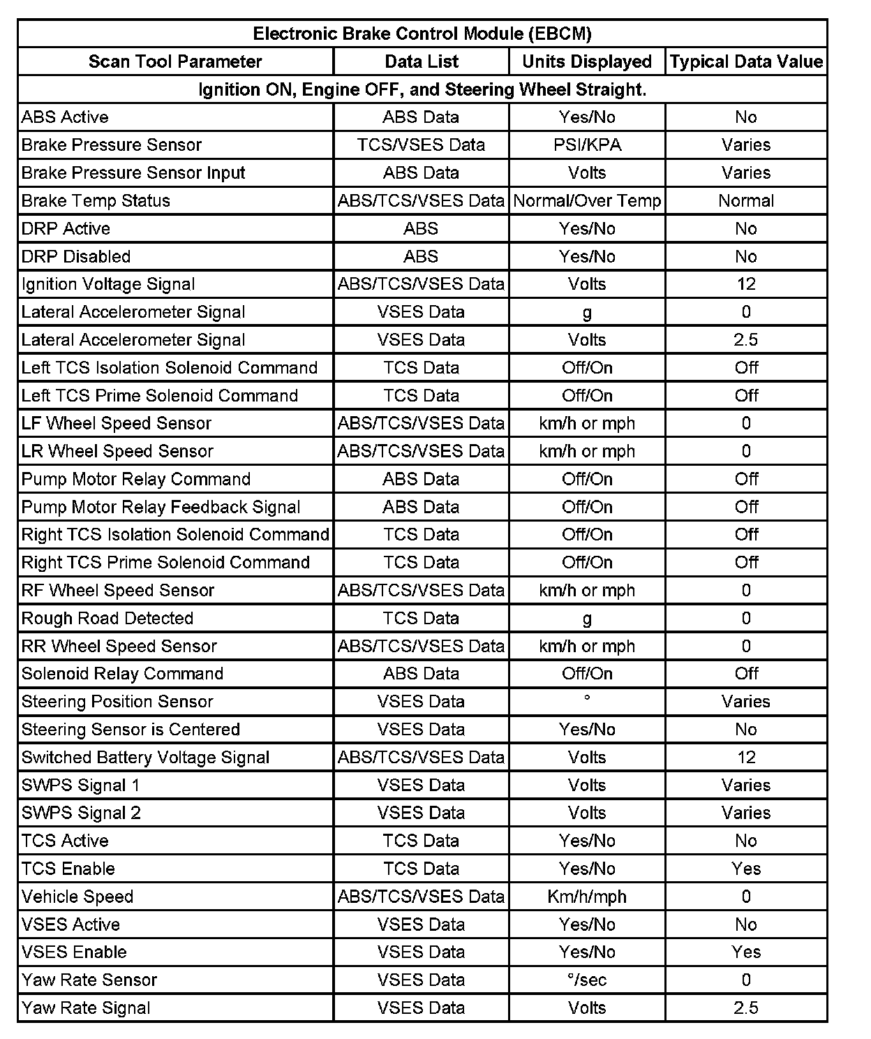 Scan Tool Data List