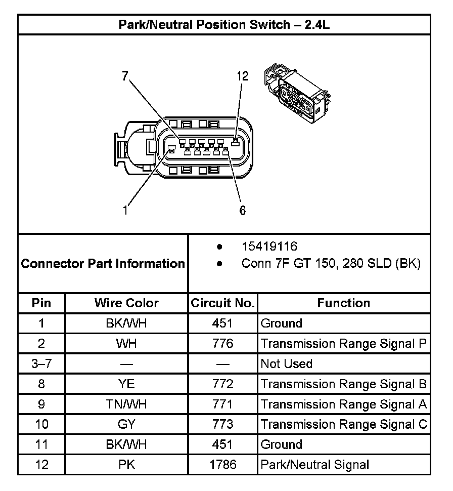 Transmission Position Sensor/Switch: Diagrams