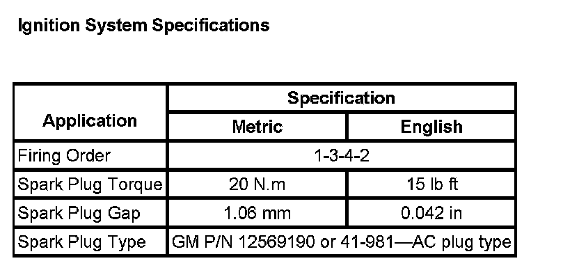 Ignition System Specifications: