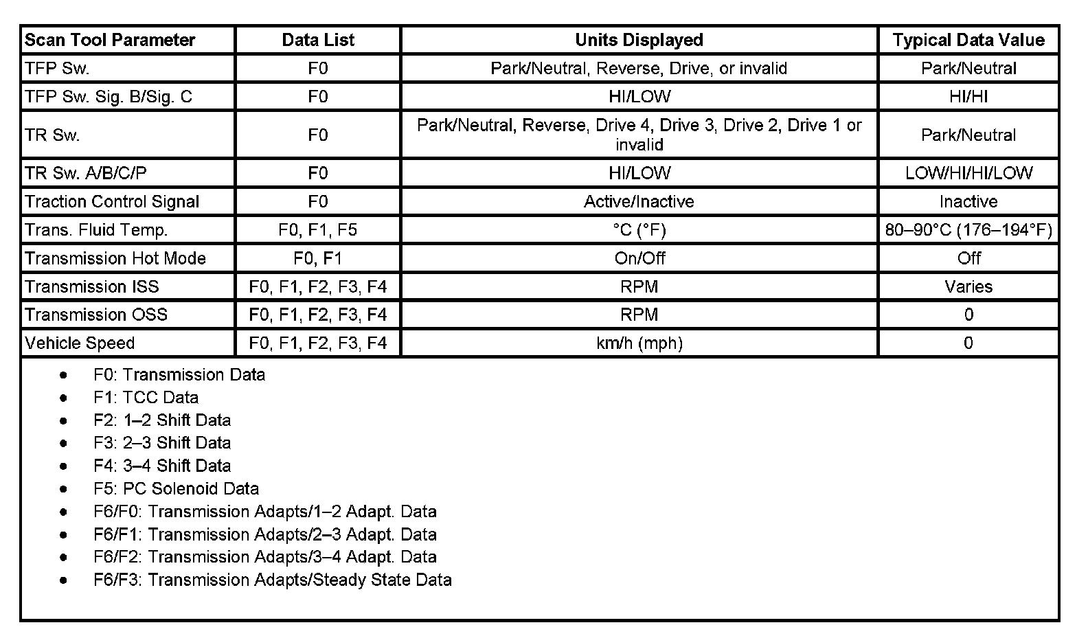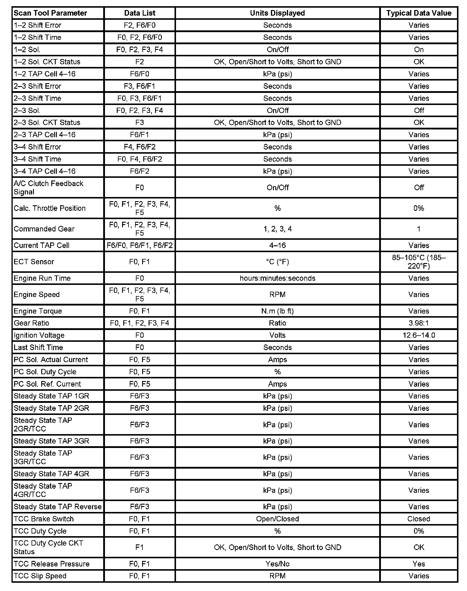 Only the parameters listed below are used in this information for diagnosing. If a scan tool displays other parameters, the values are not recommended by General Motors for use in diagnosis.