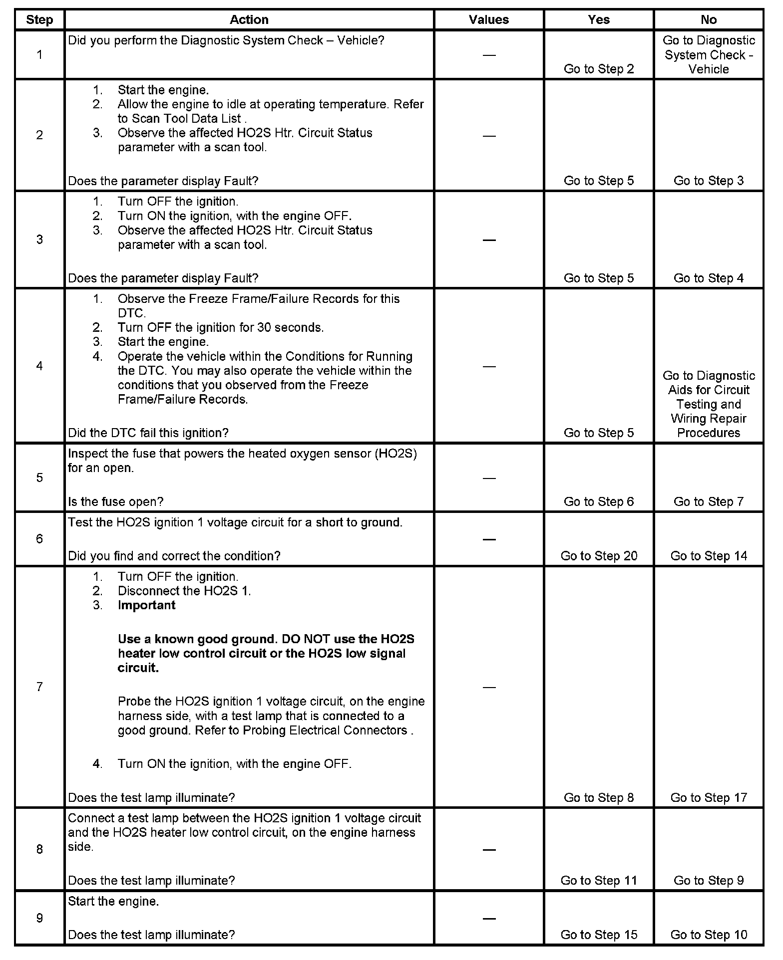- The PCM detects that the HO2S 1 heater control circuit status is incorrect for more than 2 seconds.