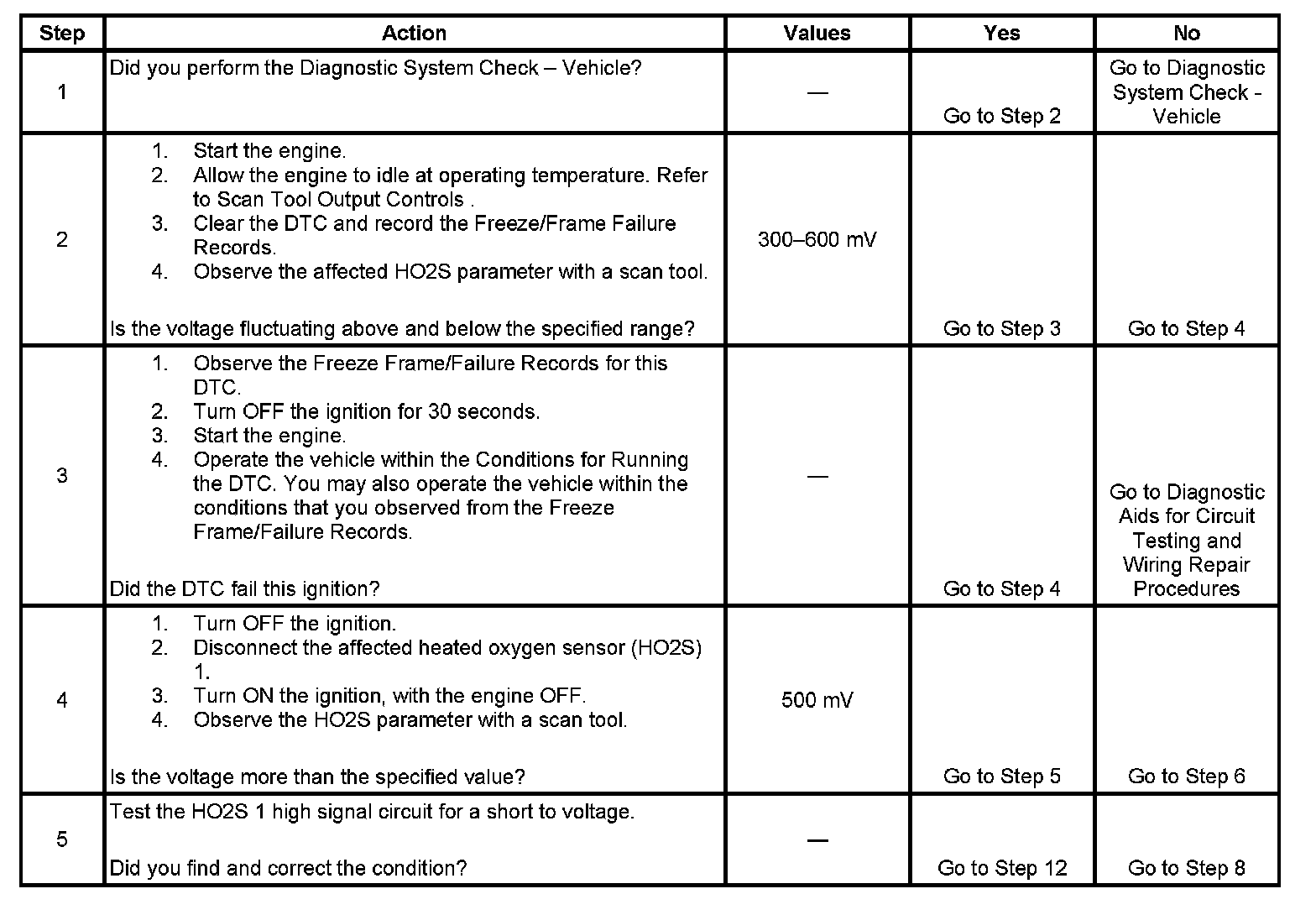 - A HO2S 1 high signal circuit
