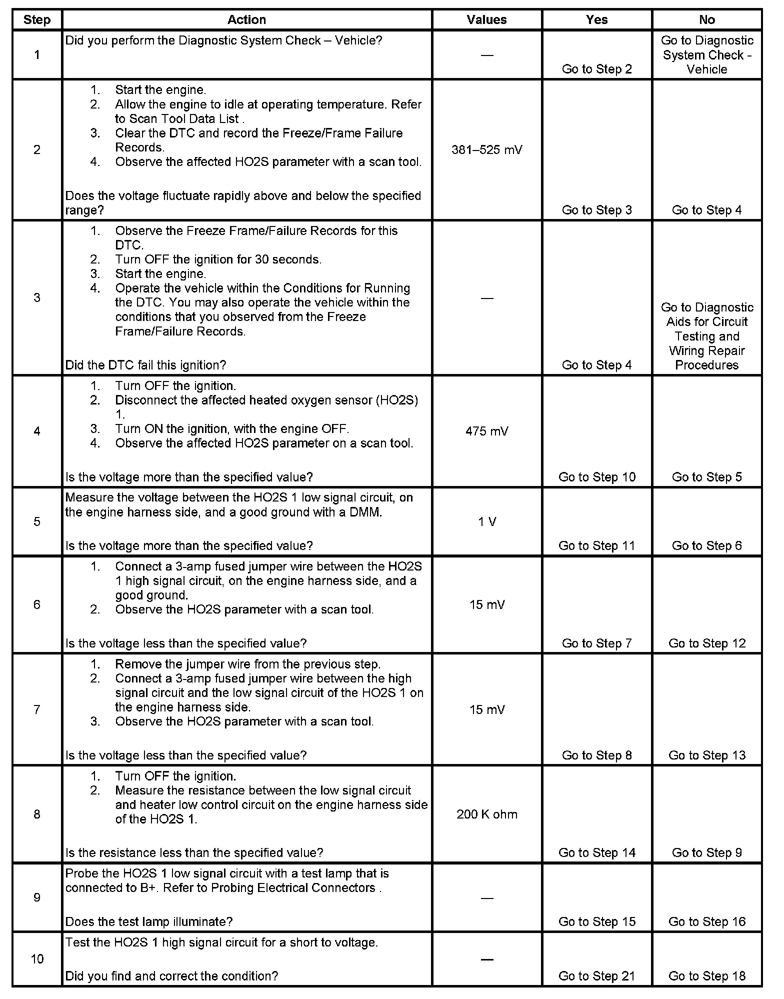 - The PCM detects that the HO2S 1 signal voltage is between 382-525 mV for more than 30 seconds.