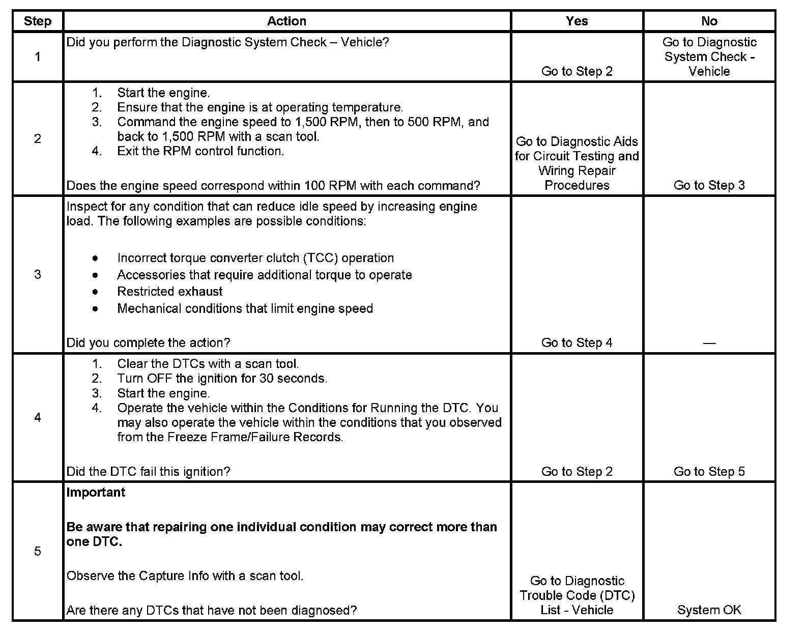 2. This test determines whether the engine can achieve the commanded RPM. If the engine does not reach the commanded RPM, the test determines whether the RPM is too high or too low.
