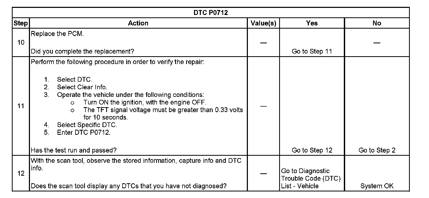 ^ The PCM stores DTC P0712 in PCM history.