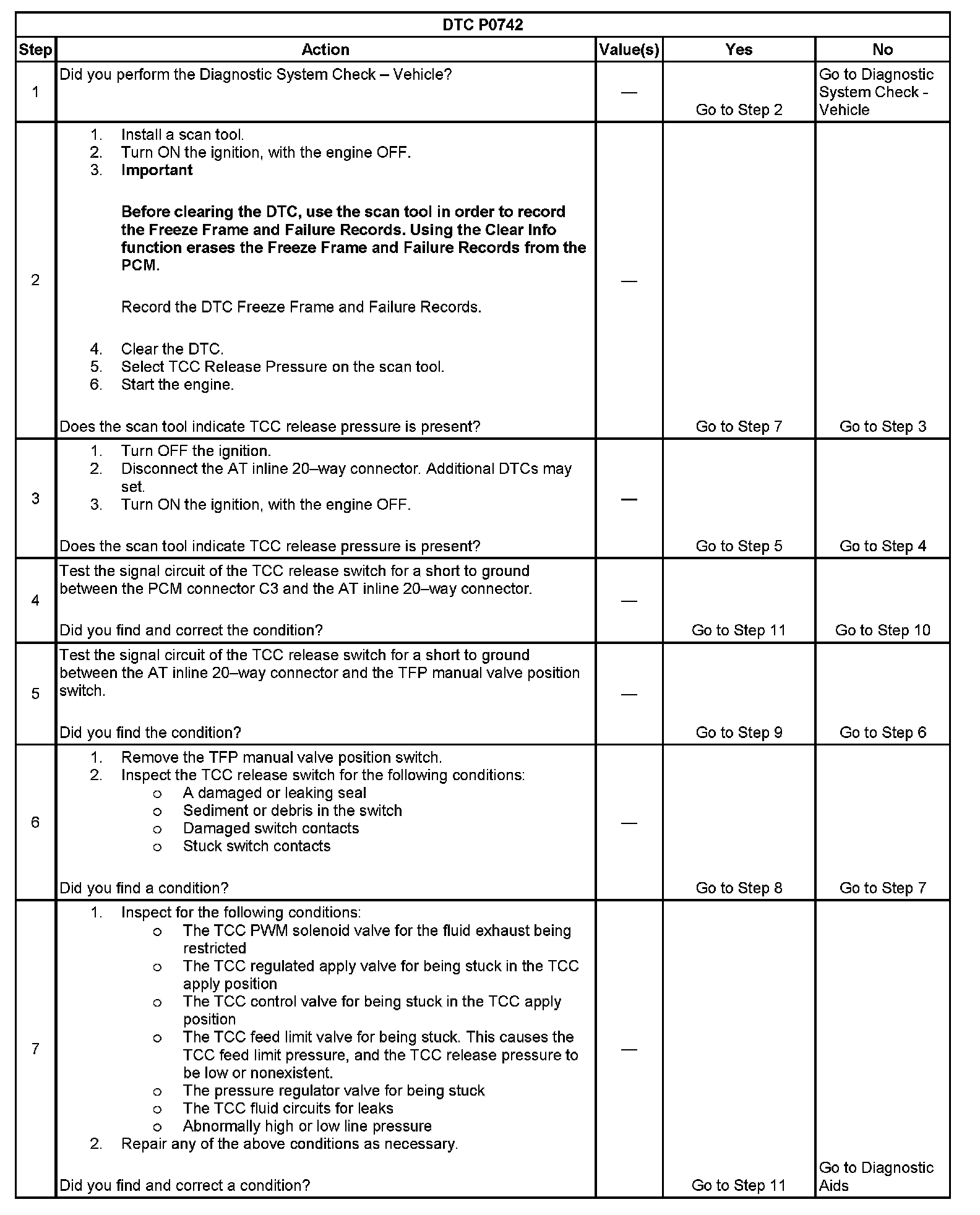 7. This step tests the TCC circuit for a mechanical or hydraulic condition.
