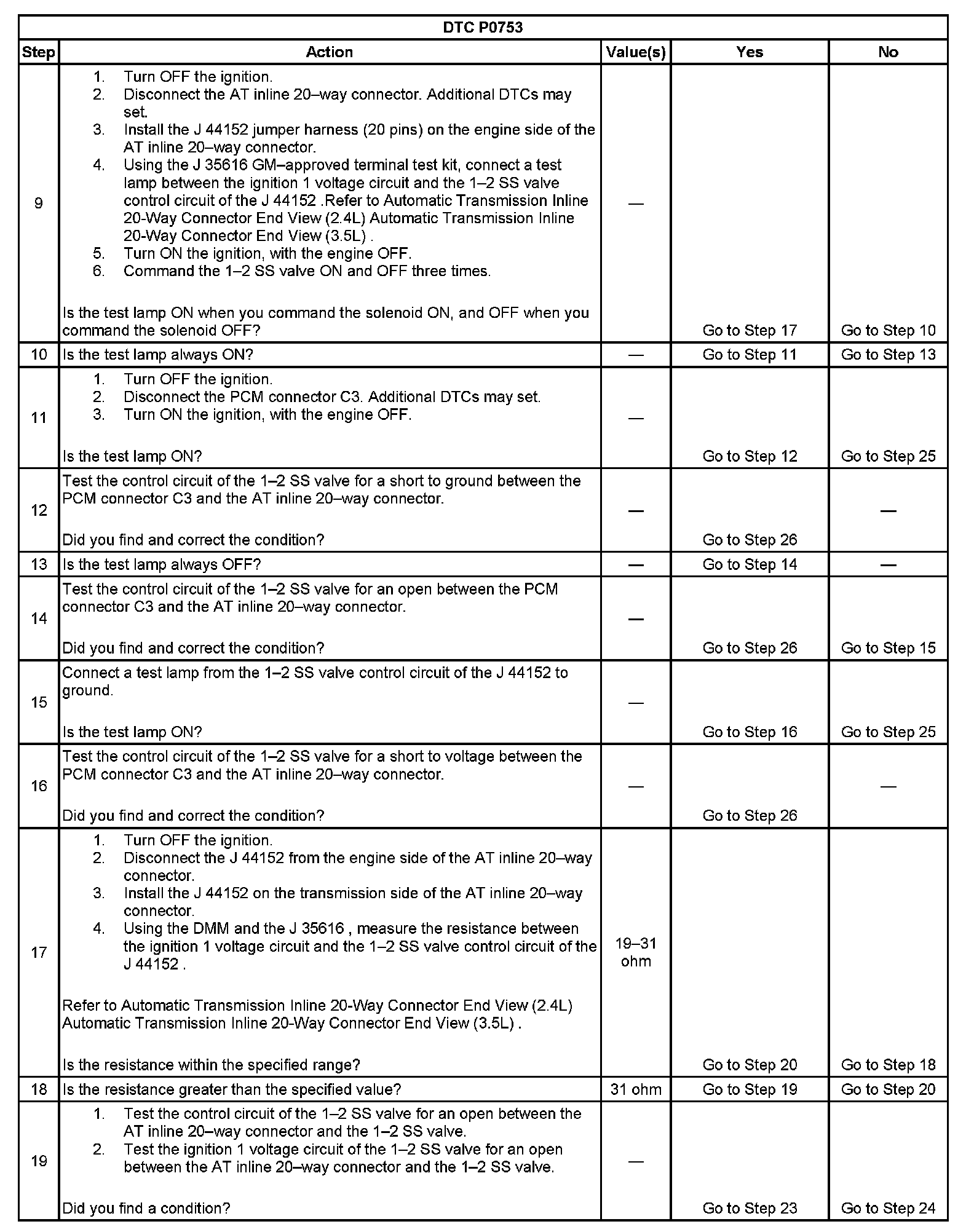 ^ The PCM stores DTC P0753 in PCM history.