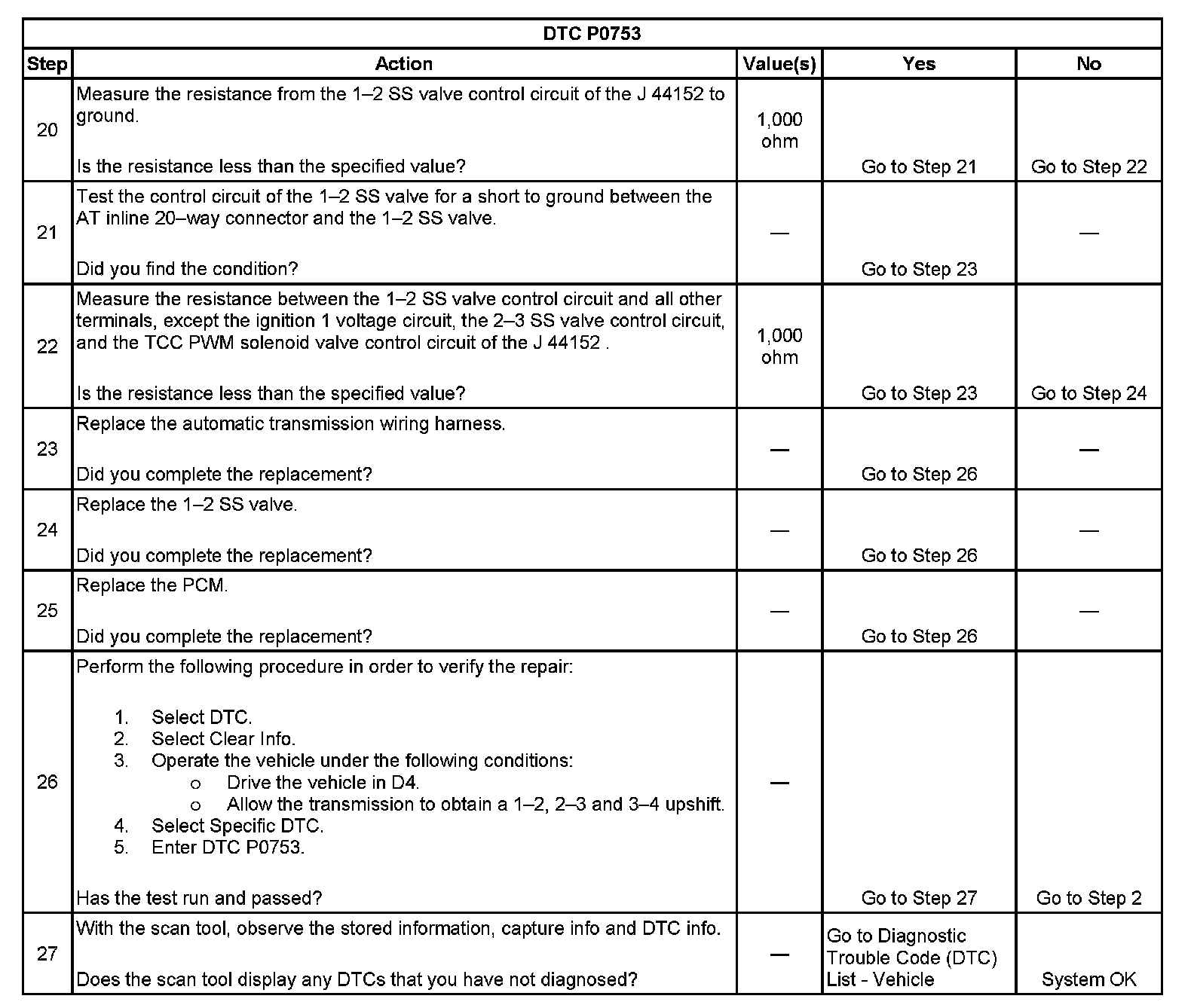 DTC P0753 1-2 Shift Solenoid (SS) Control Circuit