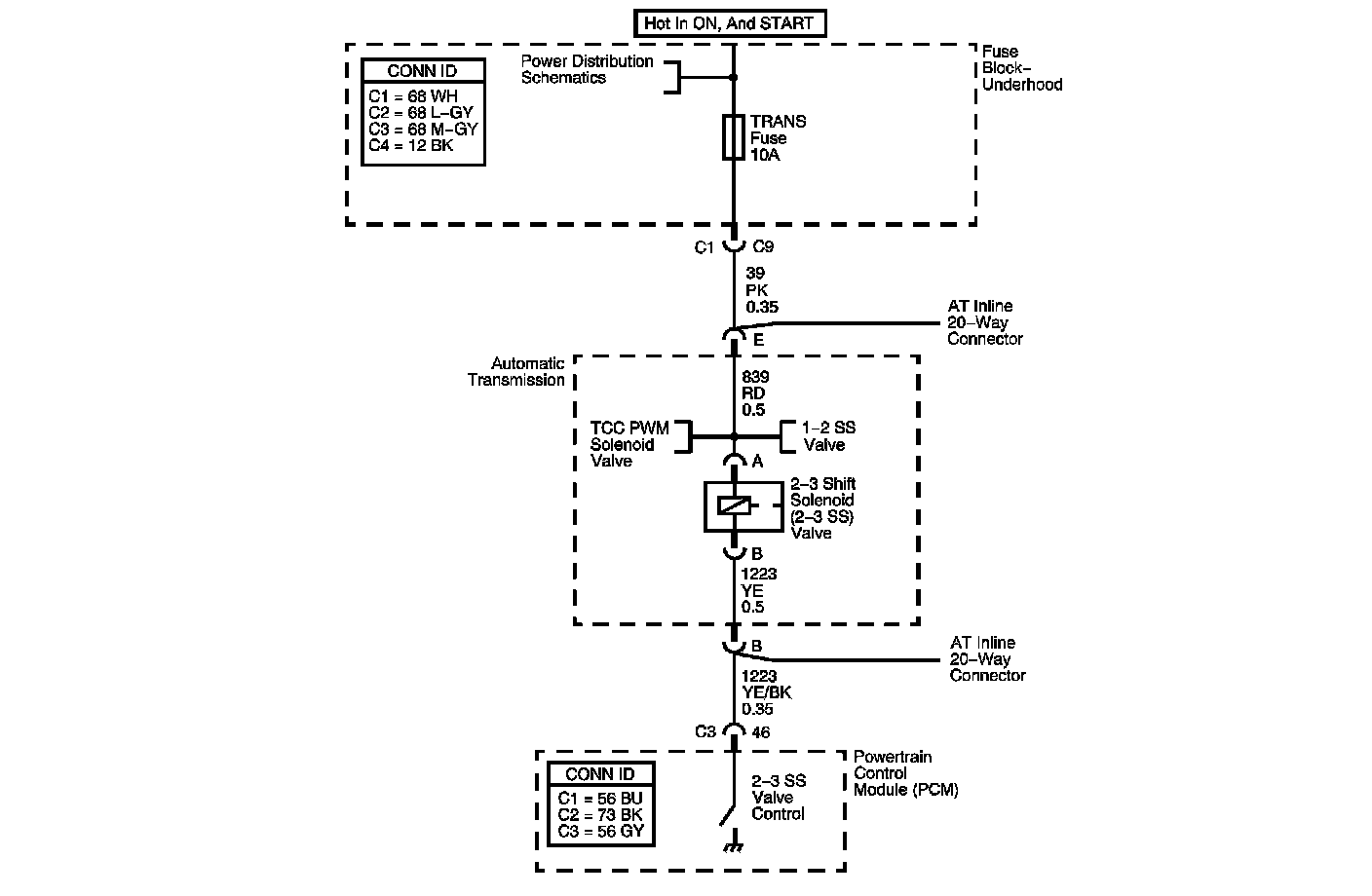 The 2-3 shift solenoid (SS) valve is a normally-open exhaust valve that, in conjunction with the 1-2 shift solenoid (SS) valve, allows four different shifting combinations. Refer to Shift Solenoid Valve State and Gear Ratio. The 2-3 SS valve is attached to the control valve body within the transmission.