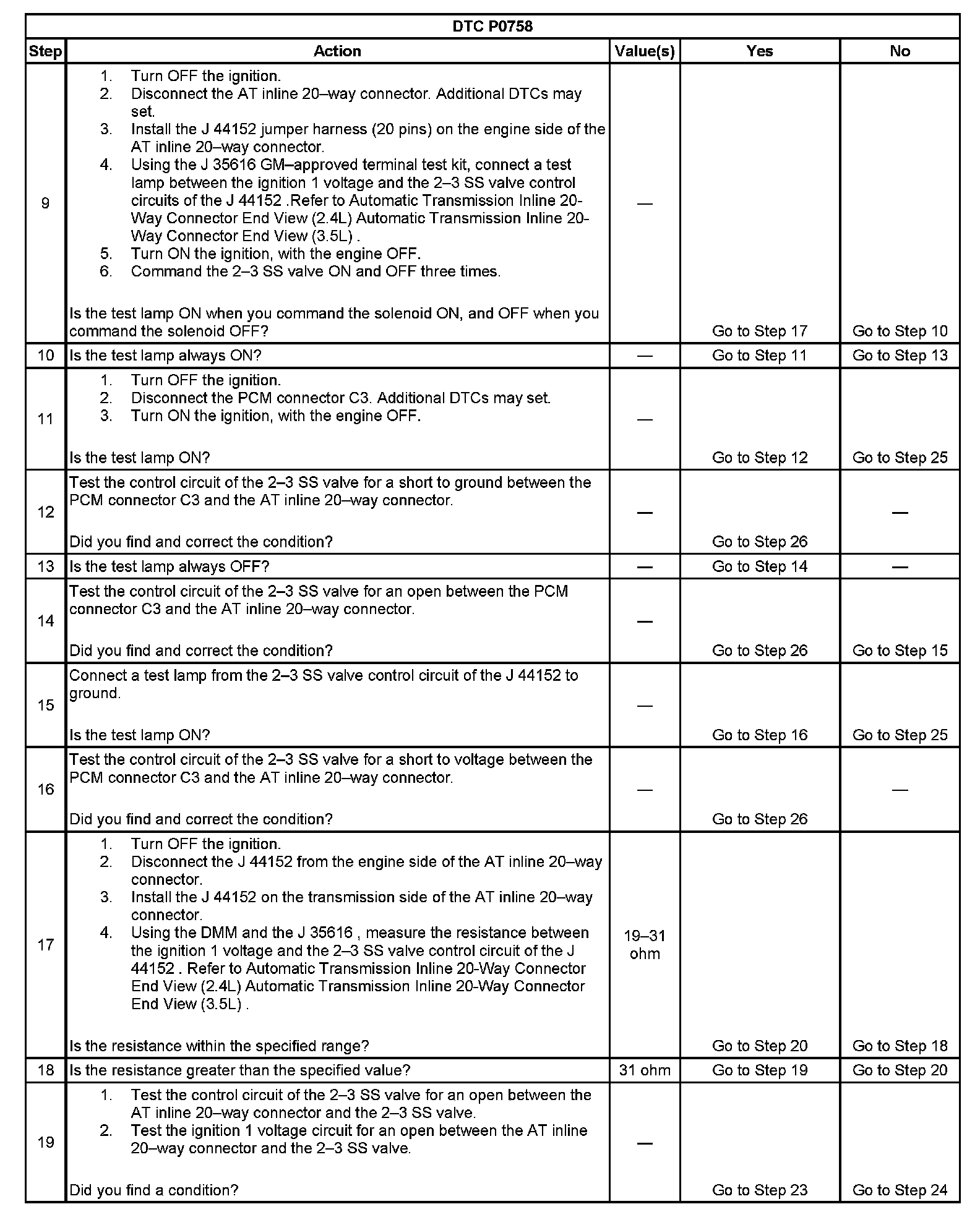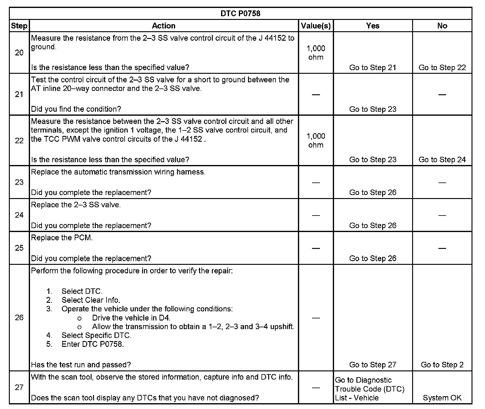 DTC P0758 2-3 Shift Solenoid (SS) Control Circuit