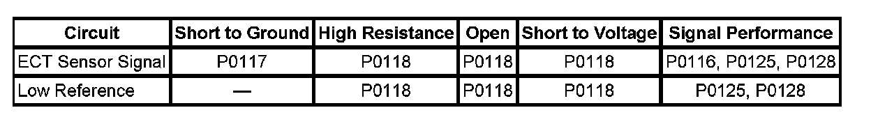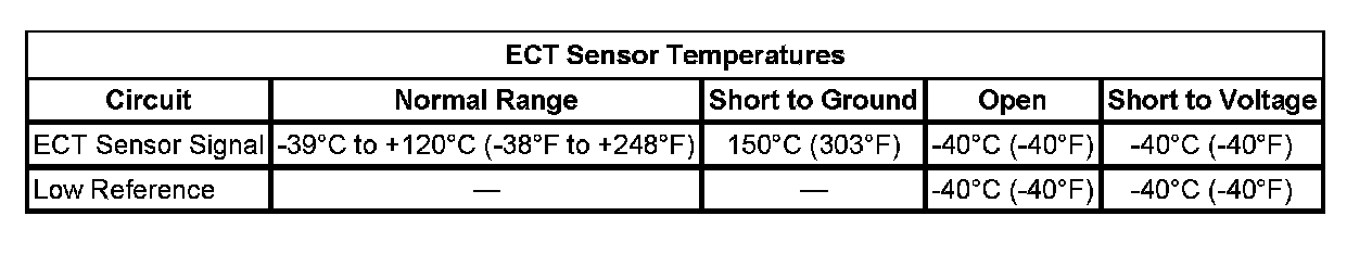 - If a short to a separate voltage source occurs this DTC may set and damage the ECT sensor.
