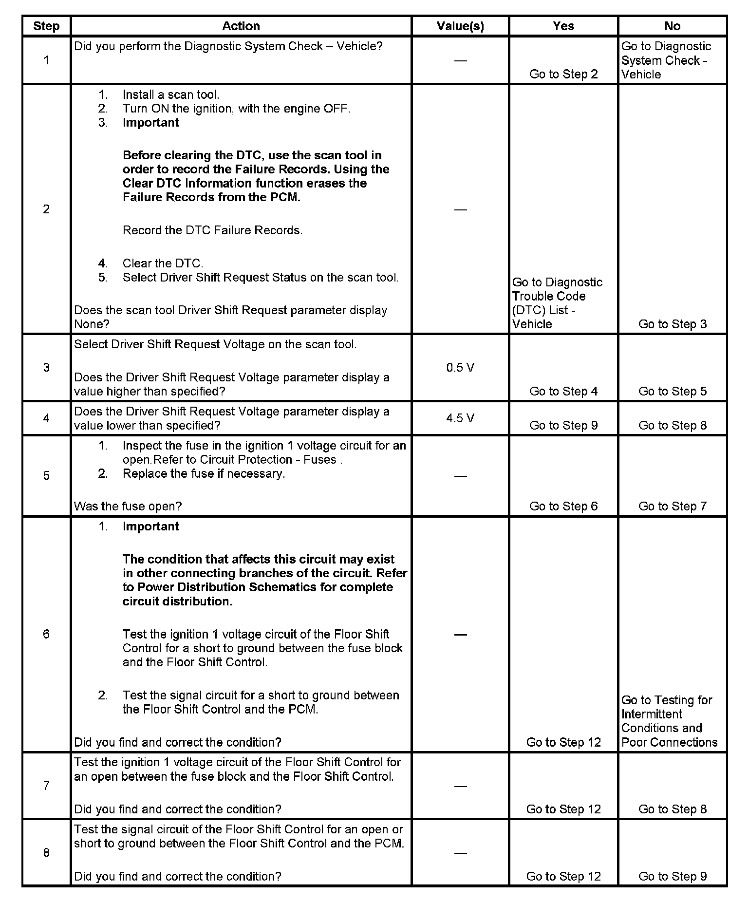 ^ The PCM records the operating conditions when the Conditions for Setting the DTC are met. The PCM stores this information a Failure Record.