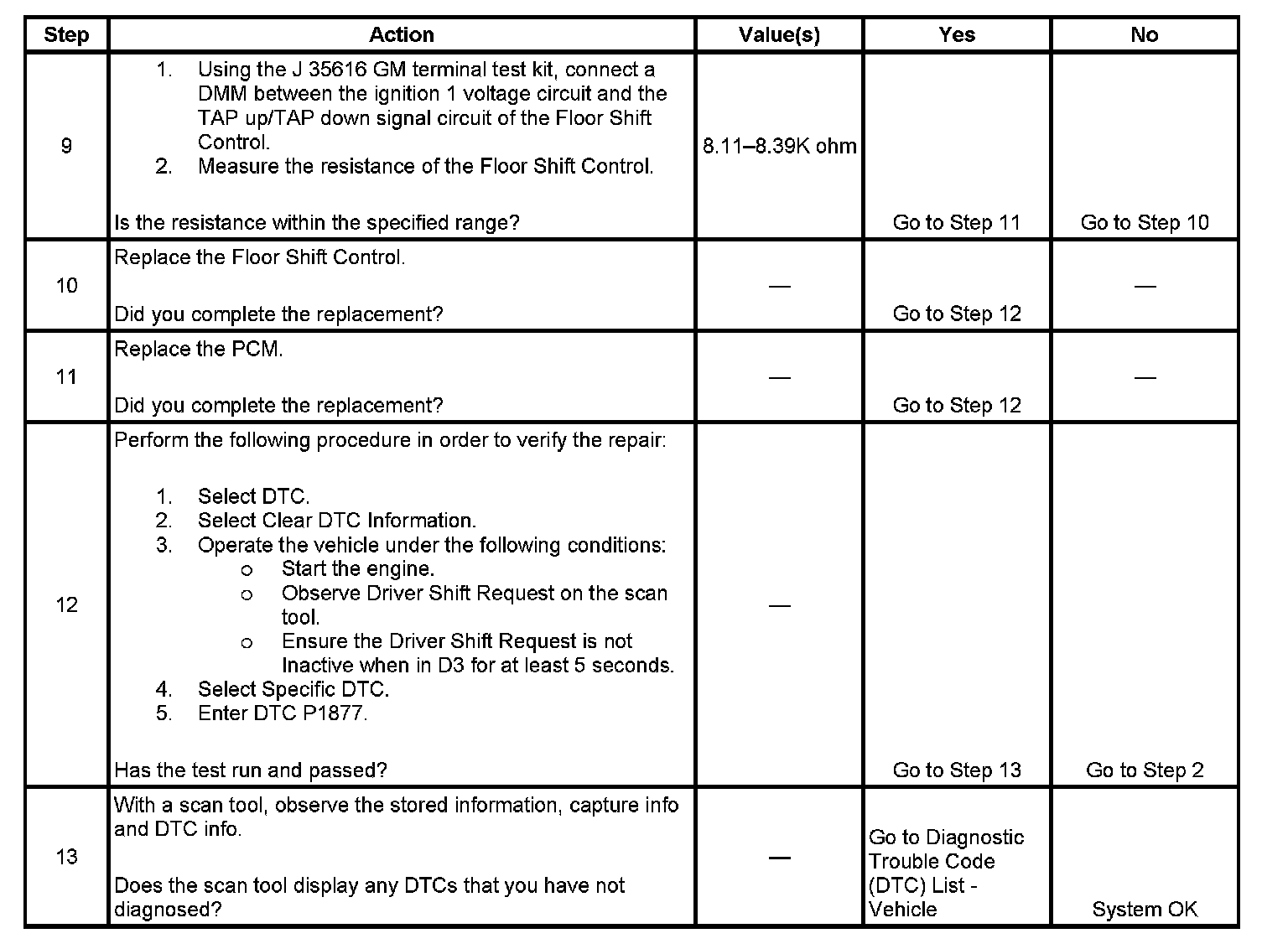 ^ The PCM stores DTC P1877 in PCM history.