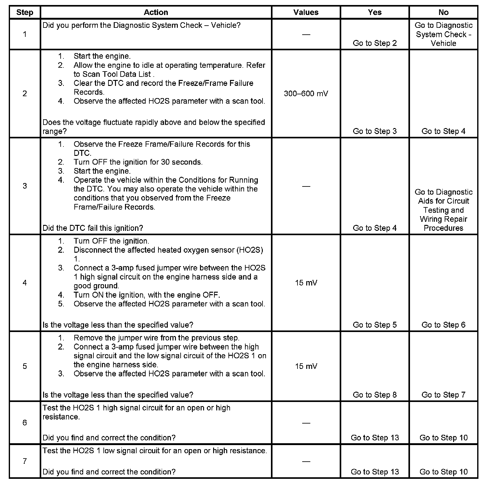 - The PCM detects that the HO2S 1 voltage signal remains within the 300-600 mV range for more than 3.6 seconds.