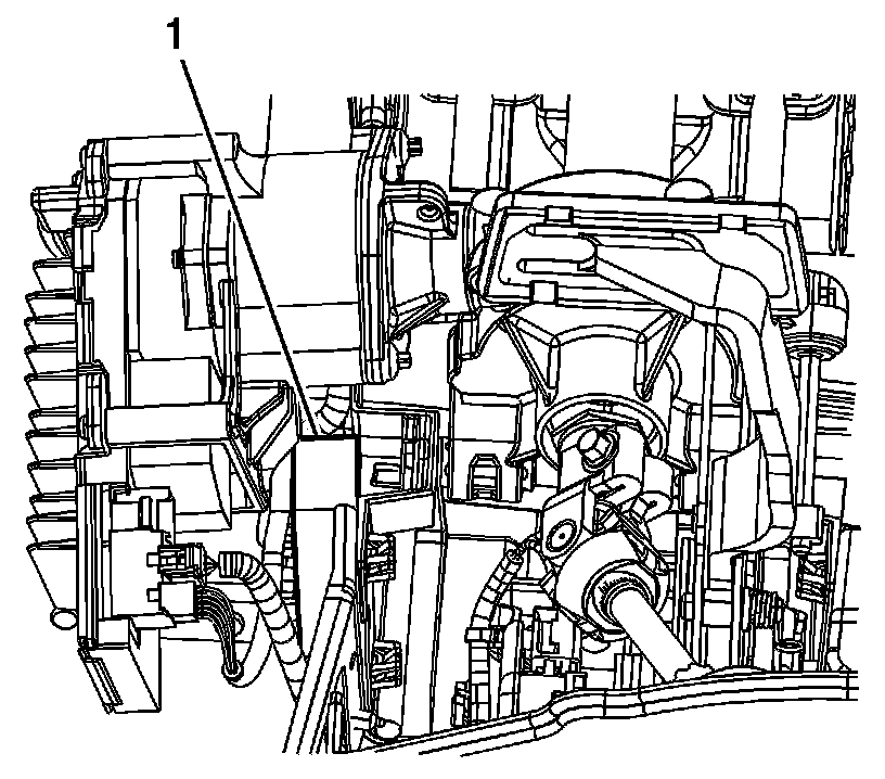 3. Remove the adjustable pedal module (1) from the side of the I/P support beam.