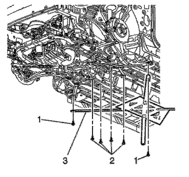 13. Remove the rear transmission mount bracket nuts from the frame. Refer to Transmission Rear Mount Bracket Replacement Service and Repair.