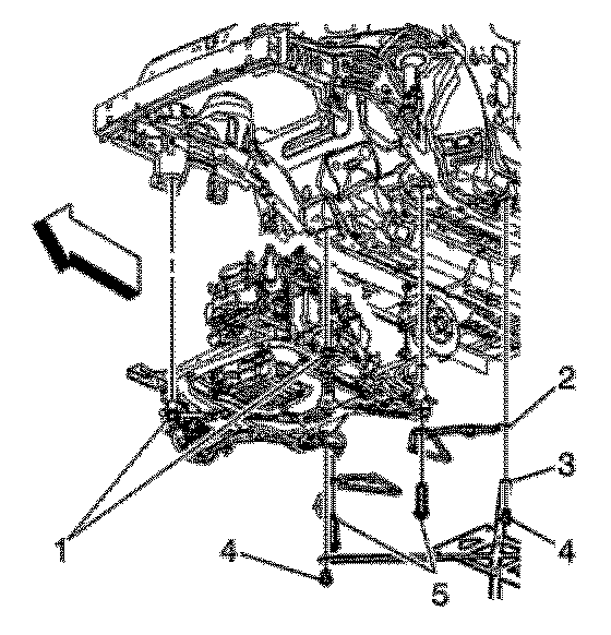 12. Remove the left transmission mount nuts from the frame. Refer to Transmission Mount Replacement Service and Repair.