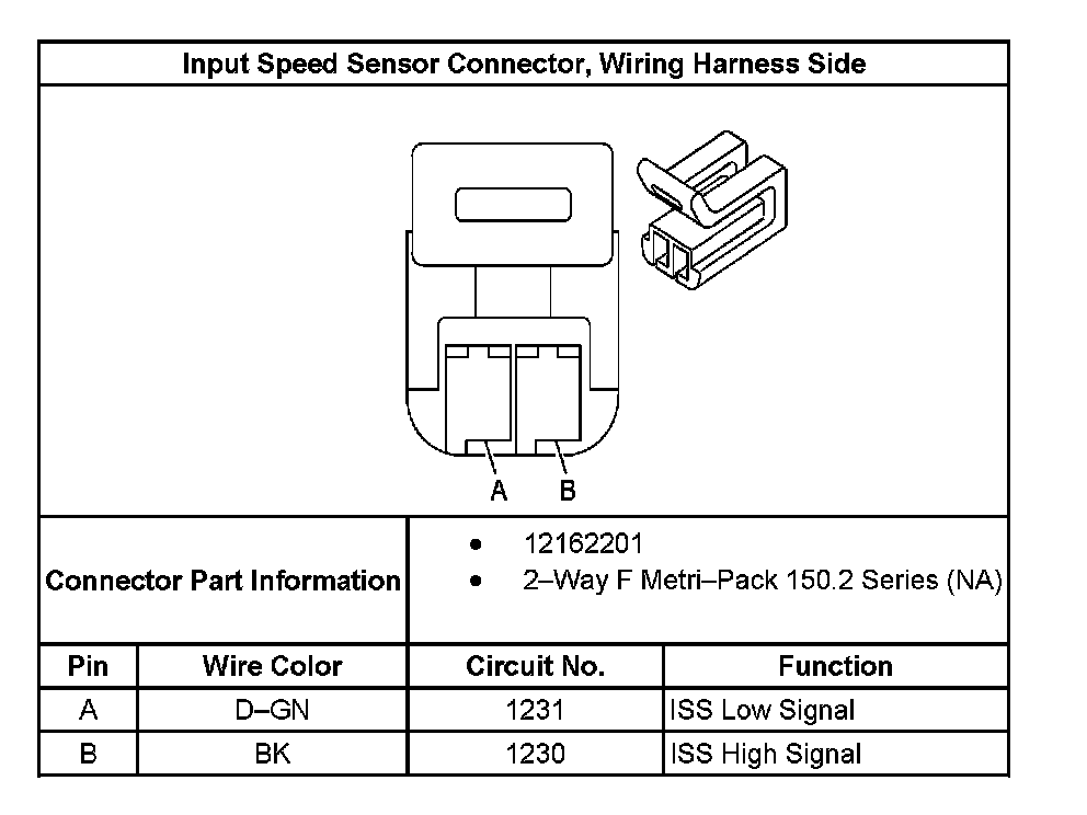 Input Speed Sensor (ISS) Connector, Wiring Harness Side: