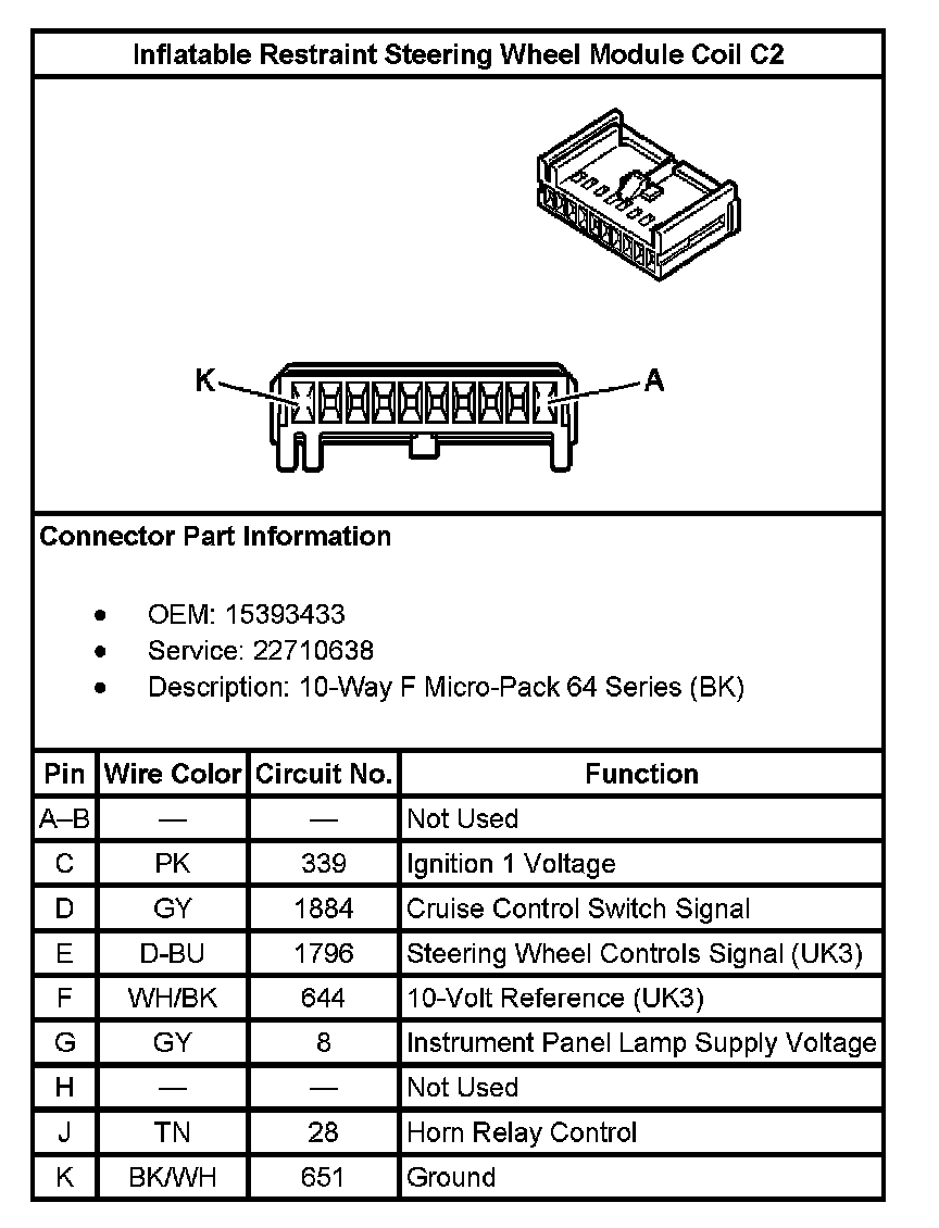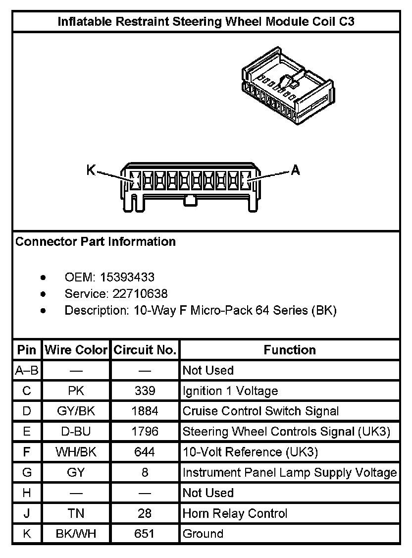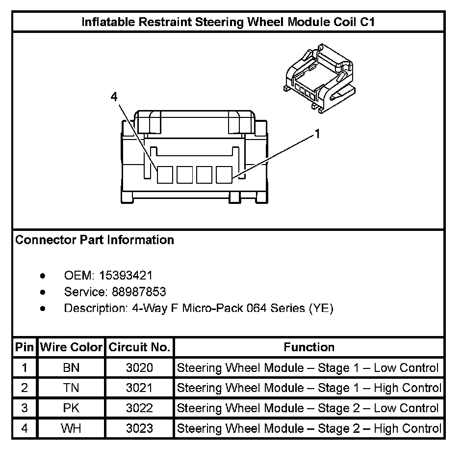 Inflatable Restraint Steering Wheel Module Coil C1: