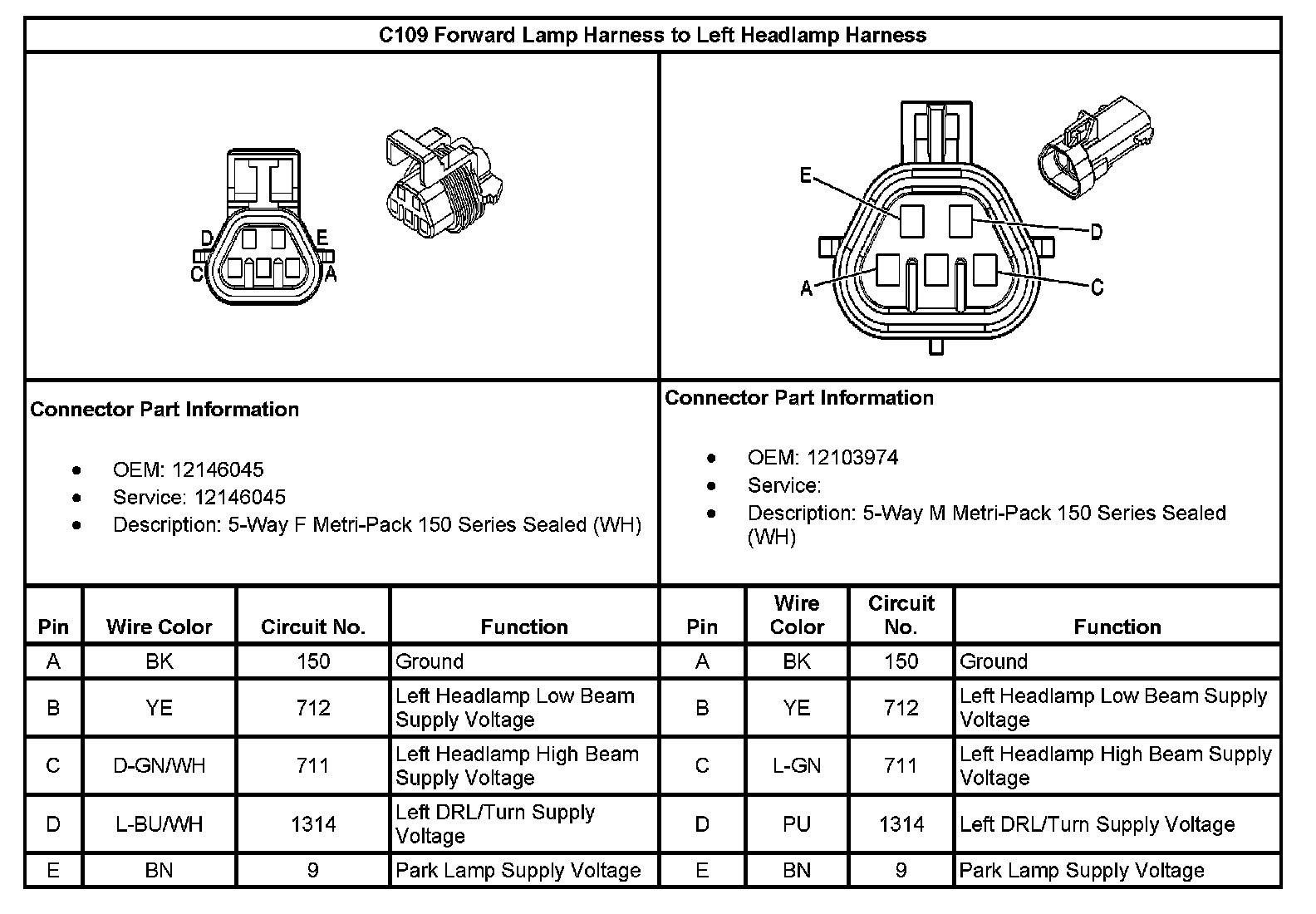 C109 Forward Lamp Harness To Left Headlamp Harness:
