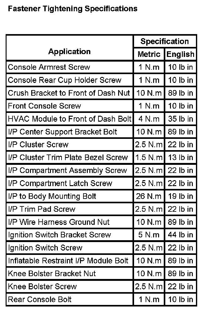 Instrument Panel, Gauges and Warning Indicators: Specifications