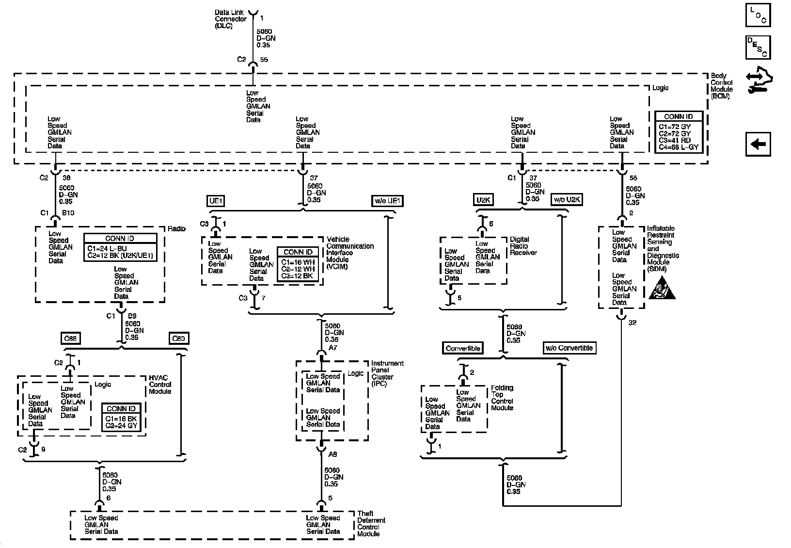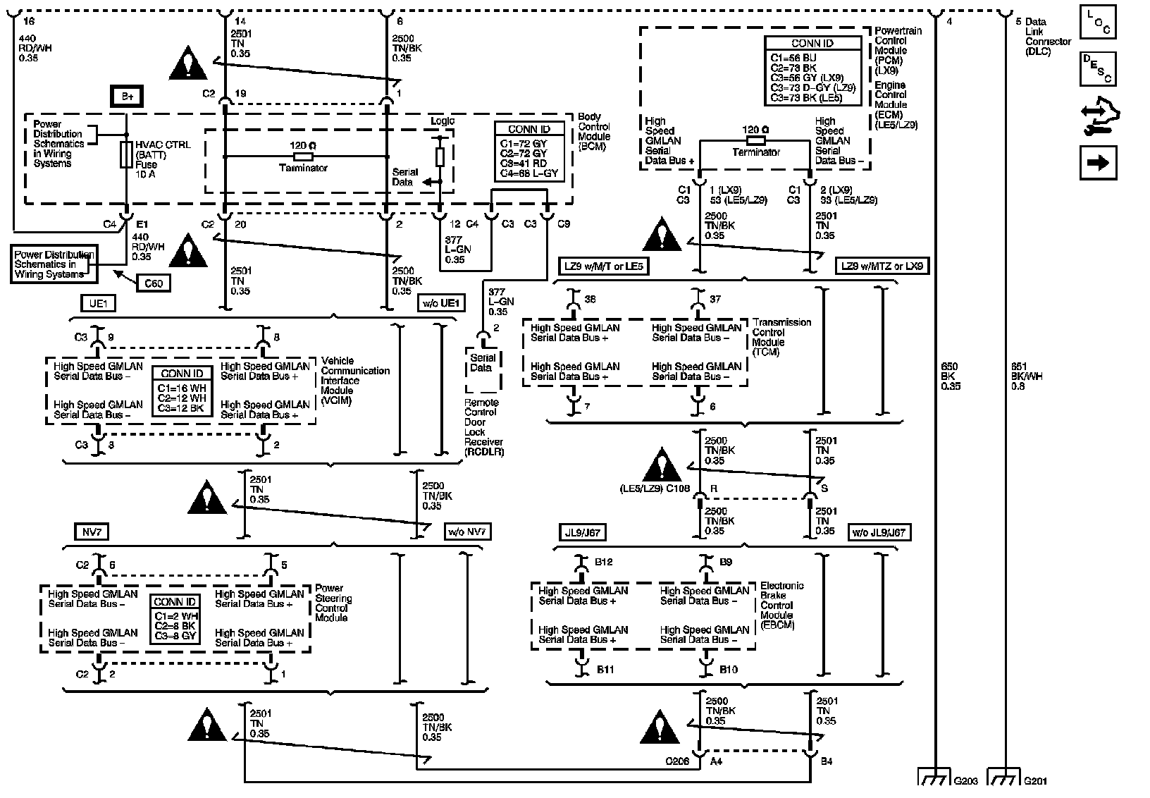 The locations for the Connectors, Grounds, Splices, and Grommets shown within these diagrams can be found via their numbers at Vehicle Locations.