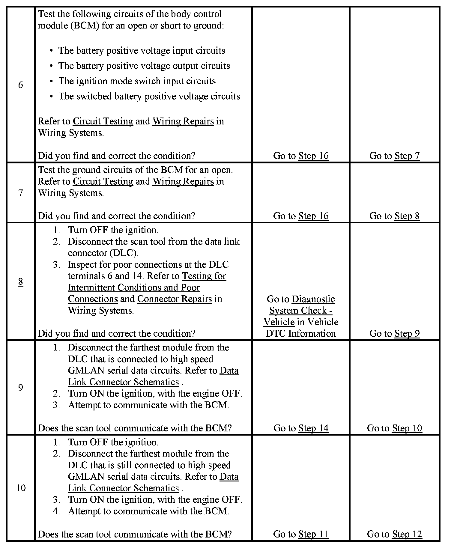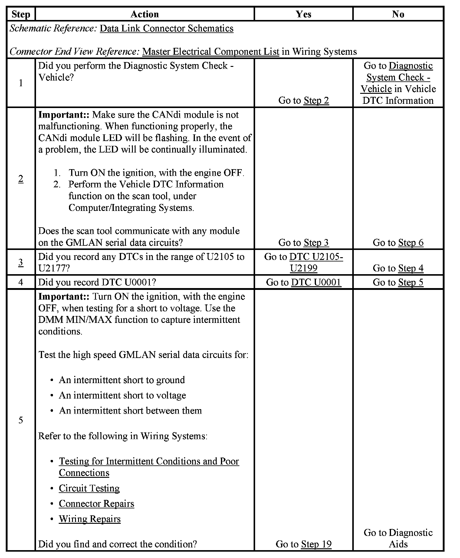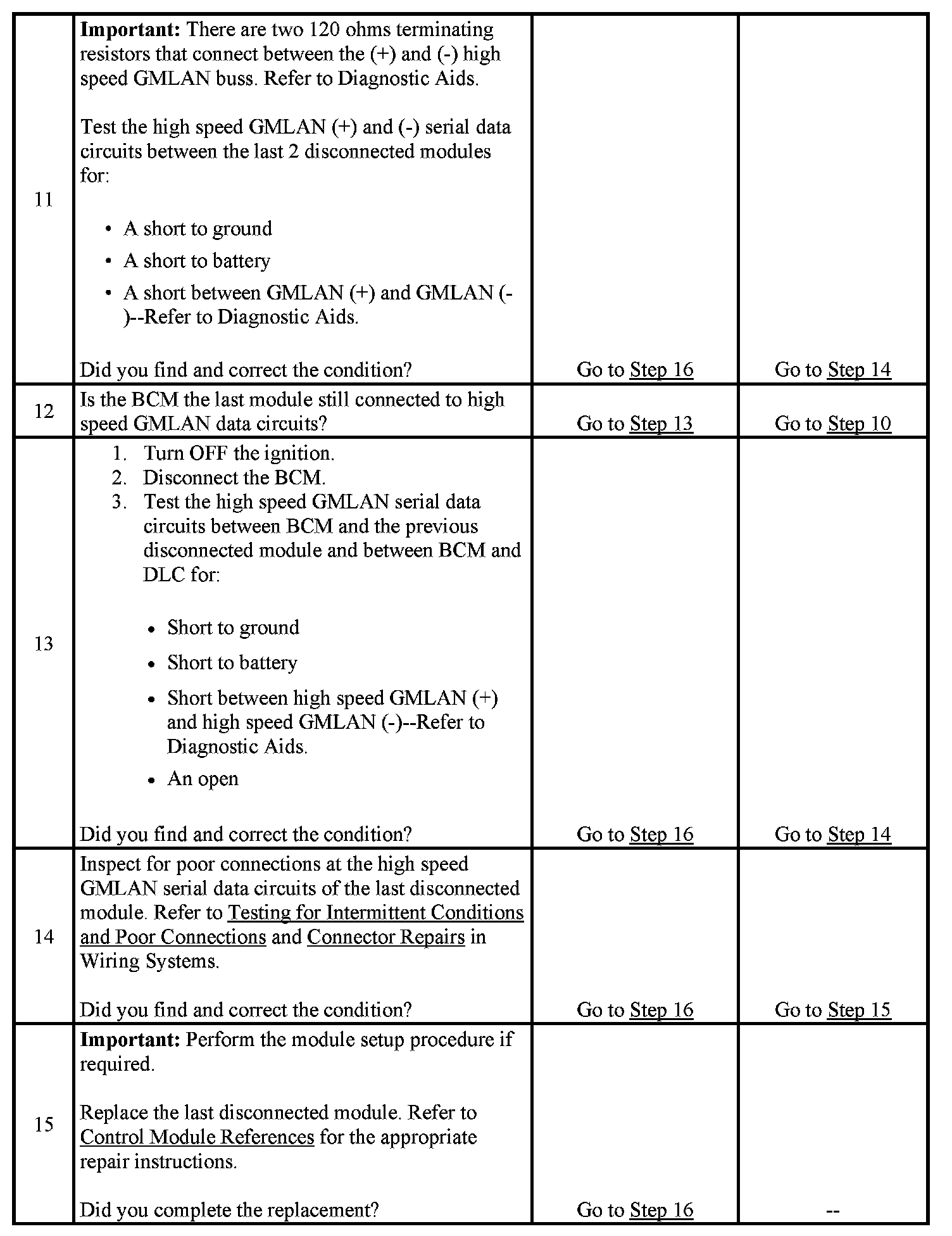2. A partial malfunction in the high speed GMLAN serial data circuits uses a different procedure from a total malfunction of the high speed GMLAN data circuits. Refer to Data Link References to identify which modules communicate on the high speed GMLAN serial data circuits.