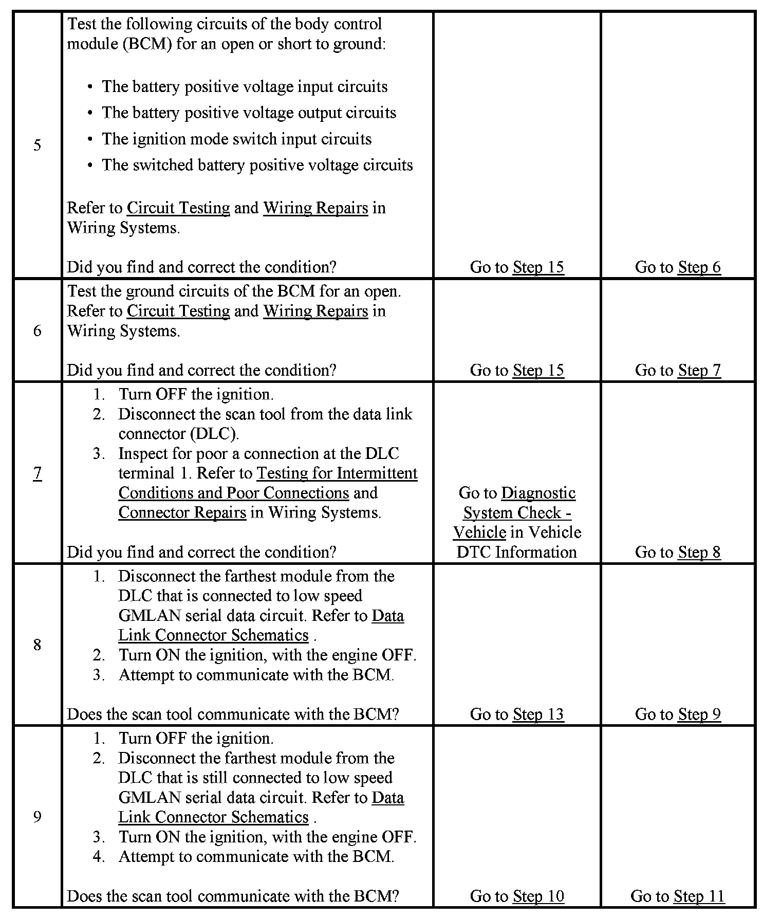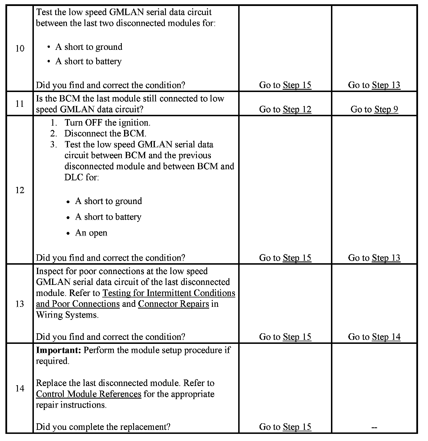 2. A partial malfunction in the low speed GMLAN serial data circuits uses a different procedure from a total malfunction of the low speed GMLAN data circuits. Refer to Data Link References to identify which modules communicate on the low speed GMLAN serial data circuits. Initial Inspection and Diagnostic Overview
