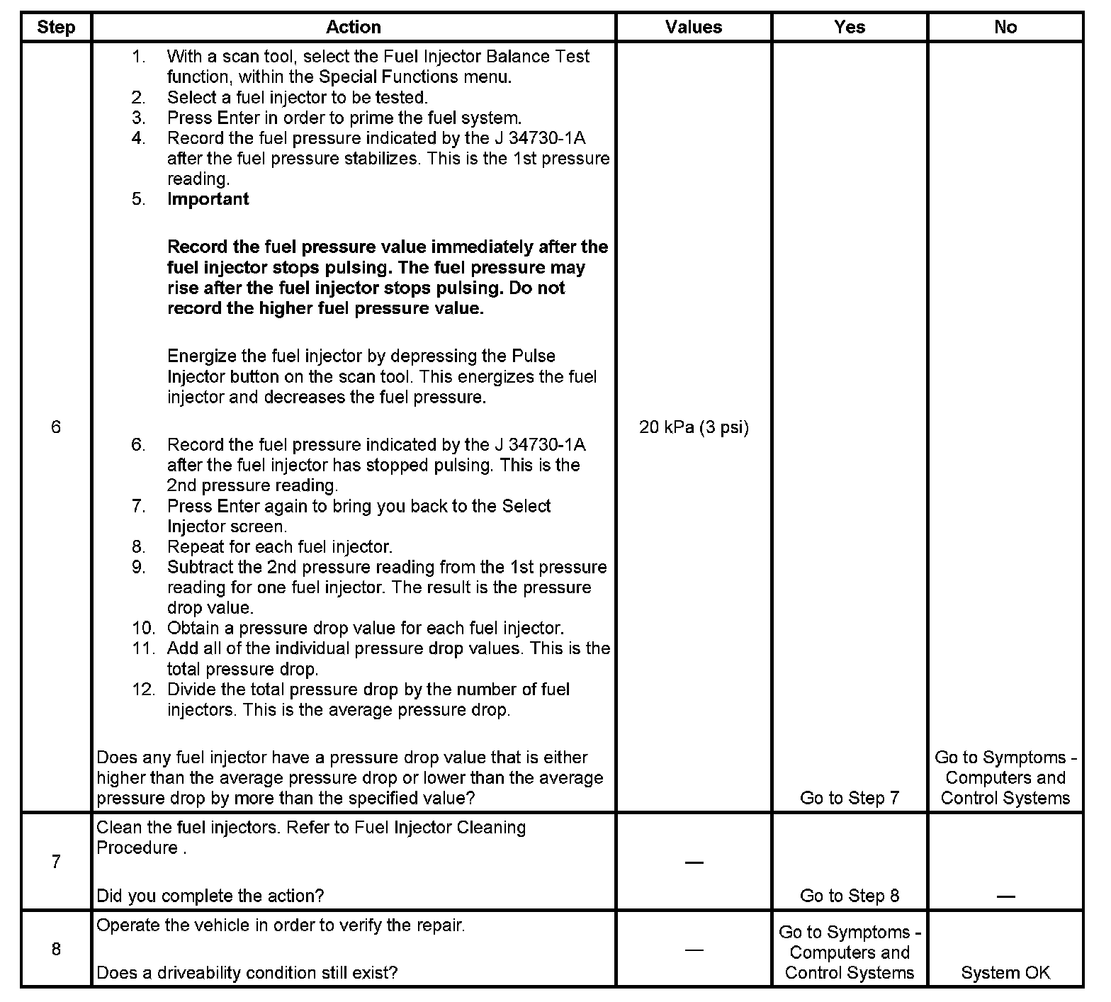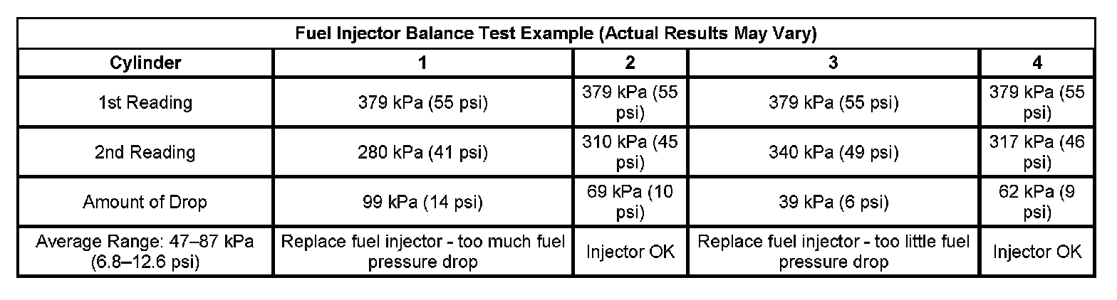 Fuel Injector Balance Test Example (Actual Results May Vary):